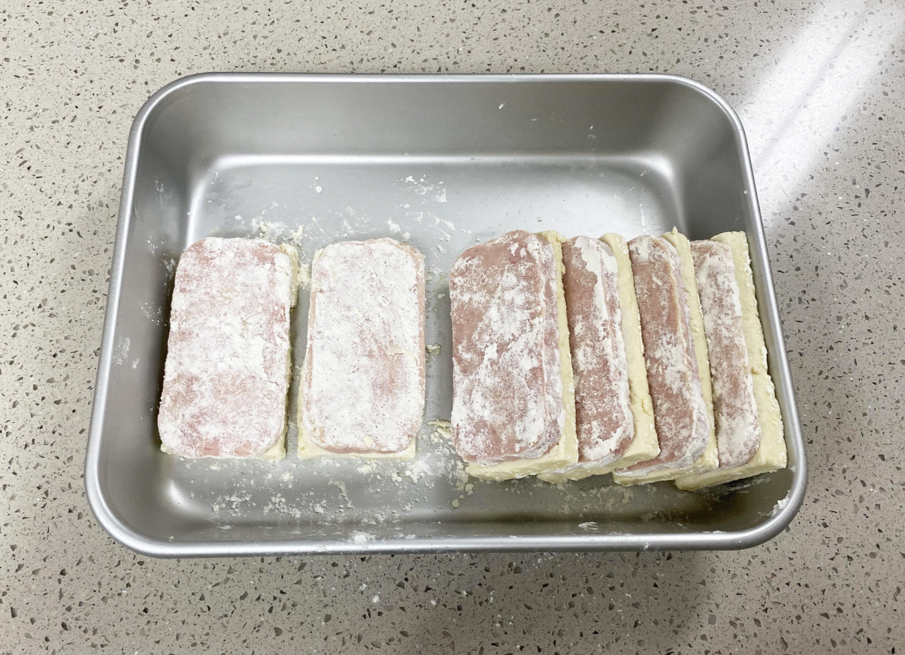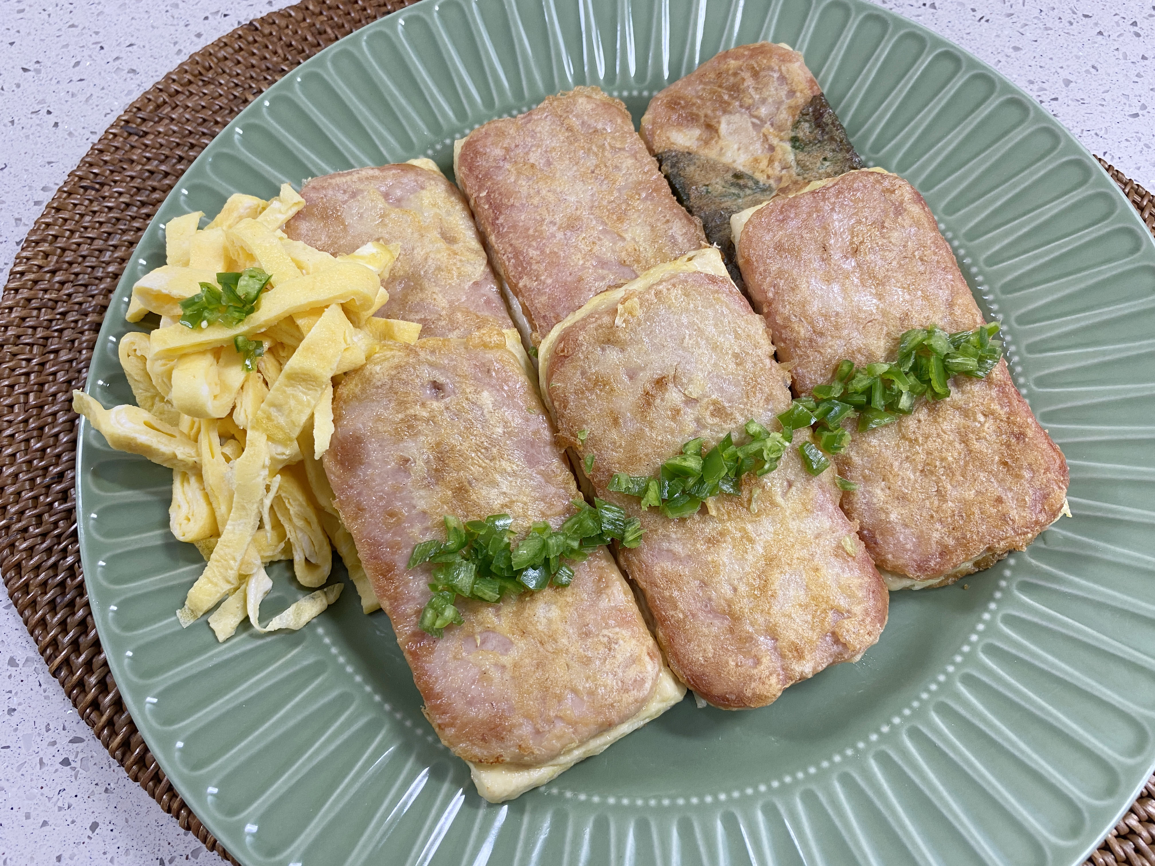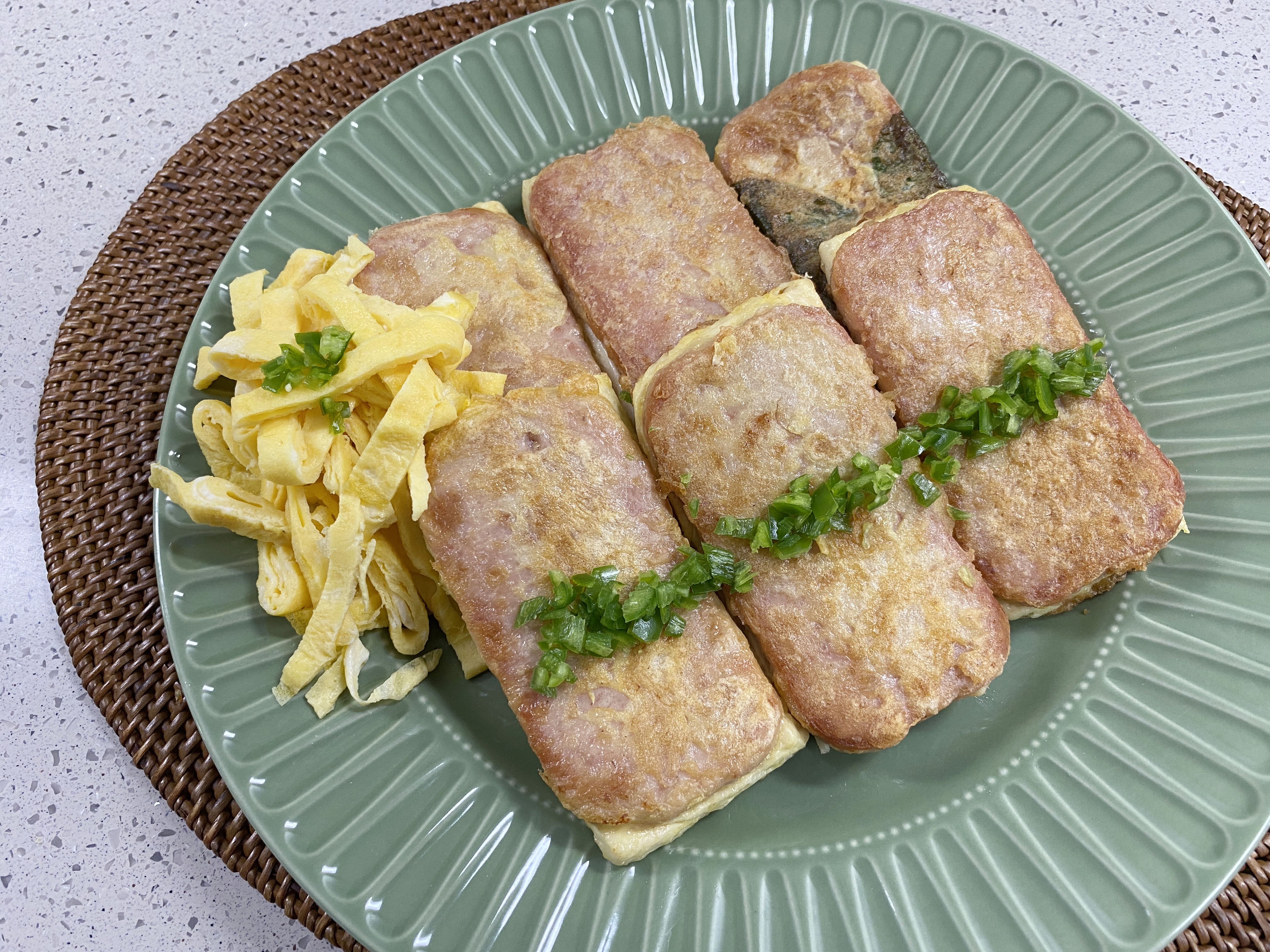 두부, 스팸 썰기~ (썰 때 손 조심!!)