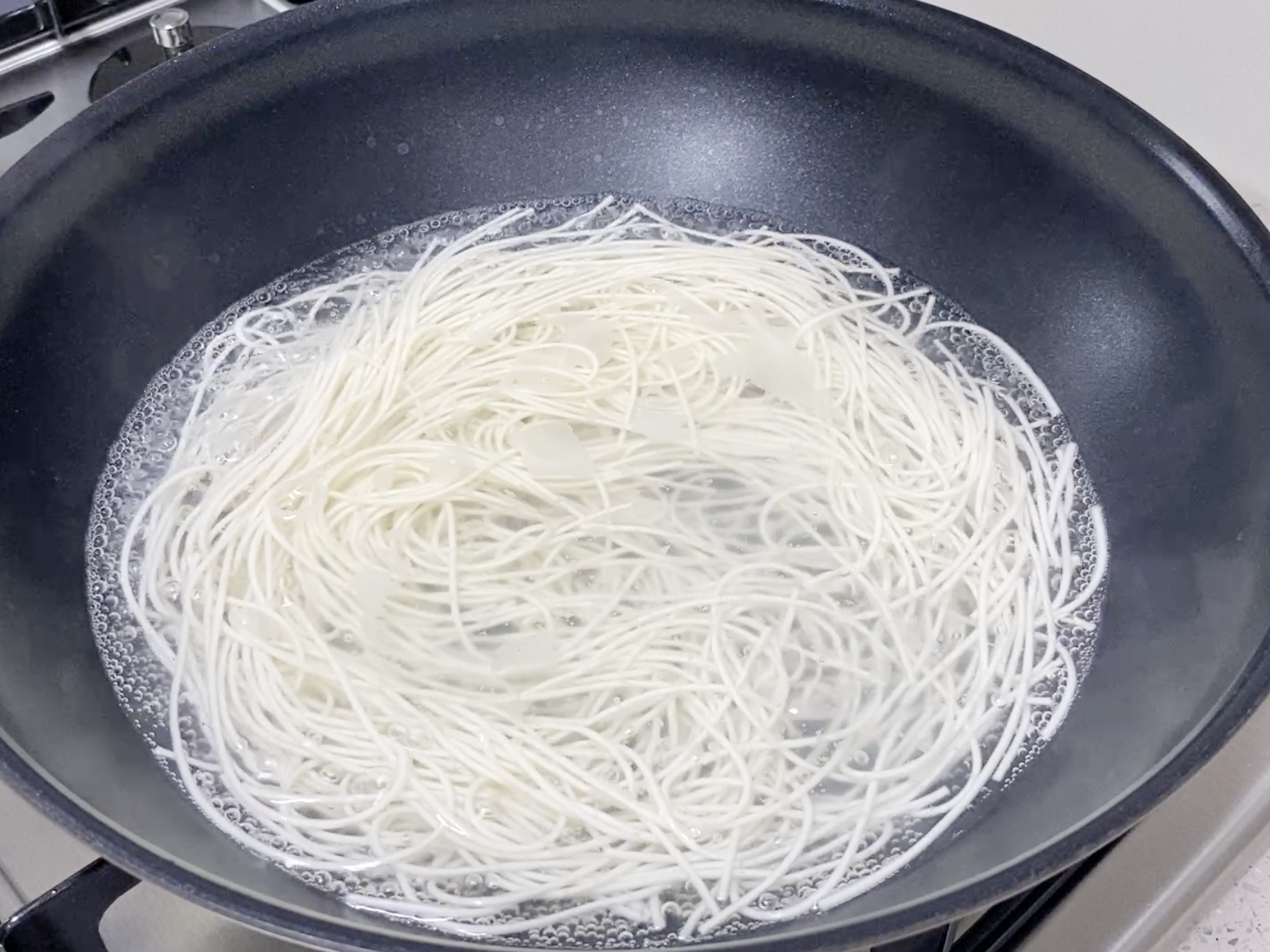 끓는 물에 소면을 넣고 약 4분 이내로 삶아, 흐르는 찬물에 여러번 씻어 전분기를 없애주세요~