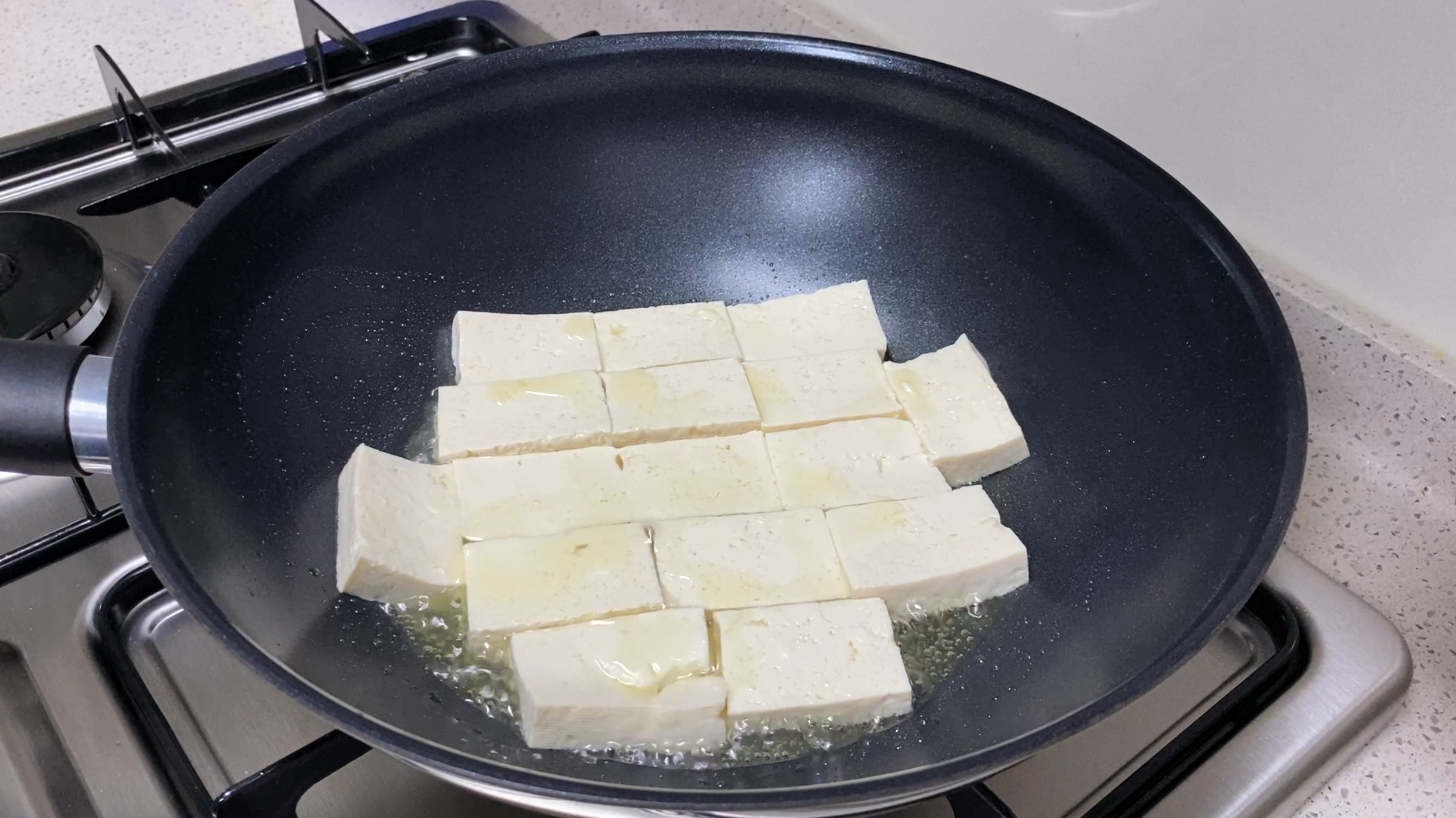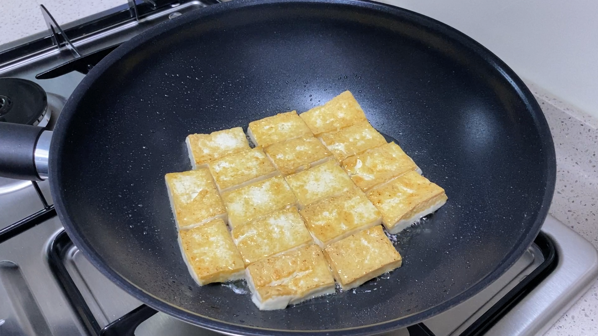 두부는 기름을 둘러 노릇하게 부칩니다.