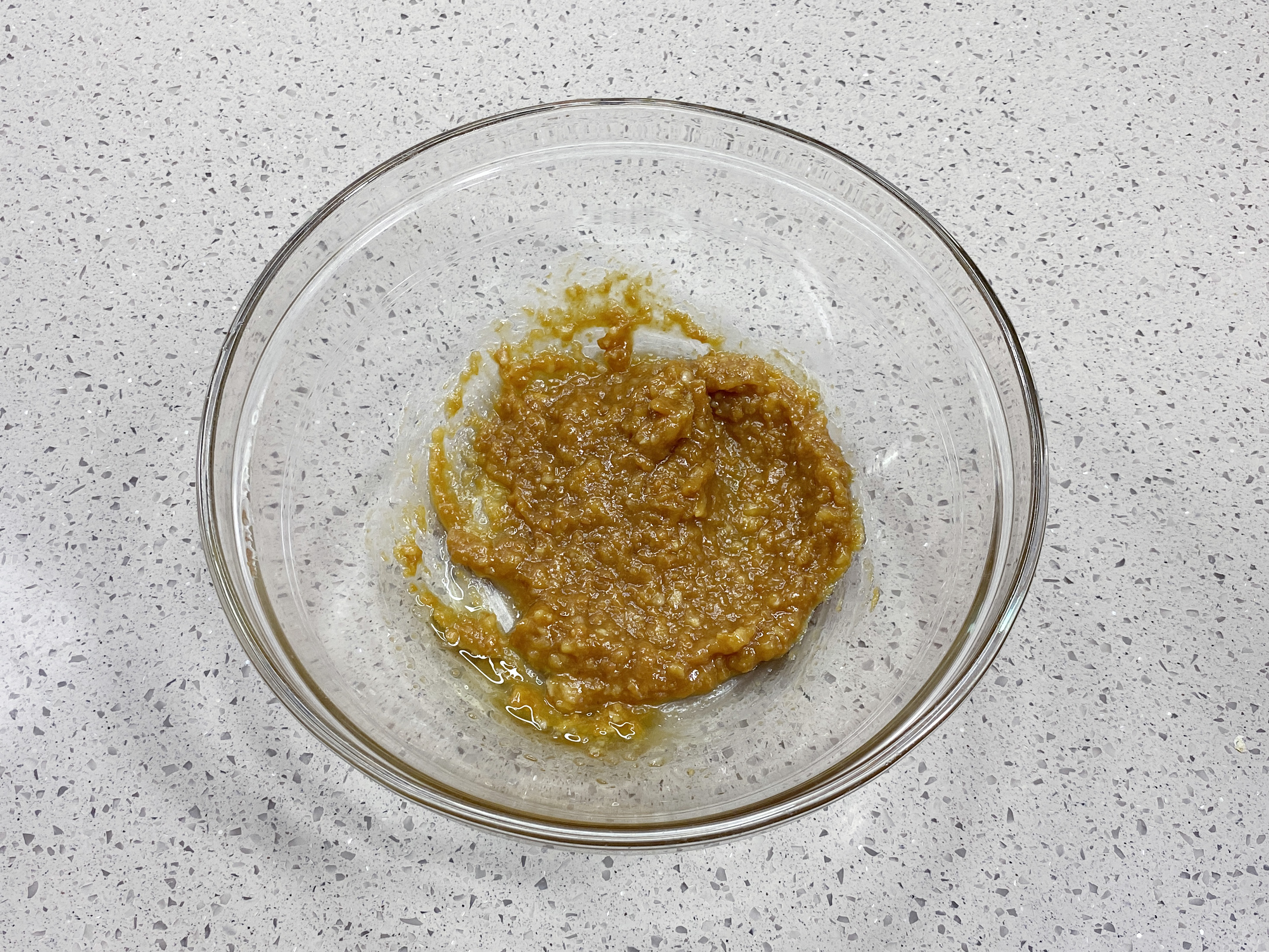 된장 2.5숟갈, 올리고당/간 마늘/참기름 1숟갈을 넣고 양념장을 만들고,