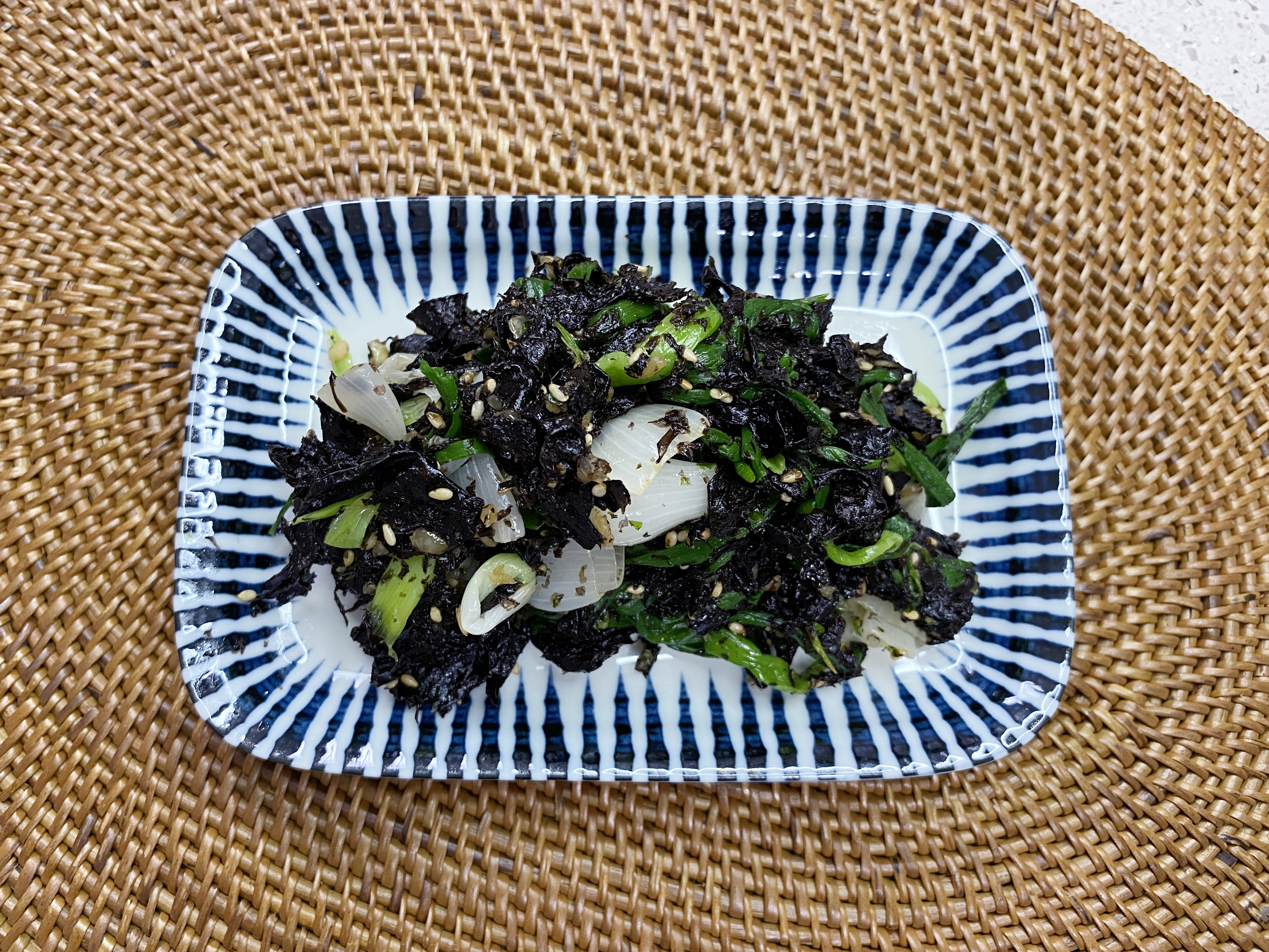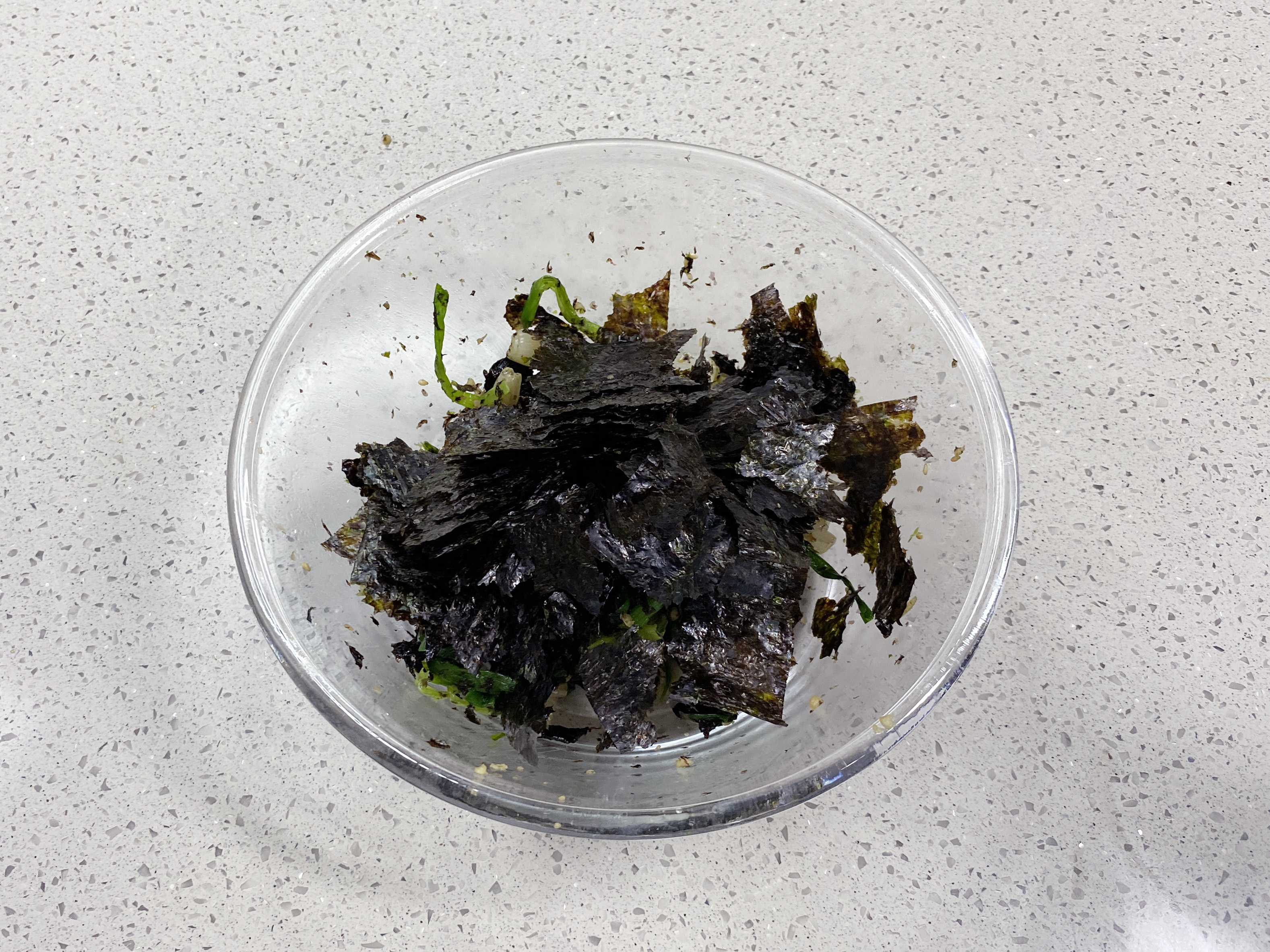 김을 두세 번 나눠 무쳐서~ 마무리로 통깨를 뿌려 섞어주면 완성!! (김을 한번에 다 넣으면 뭉치기 때문에,, 두 세번 나눠서 무쳐 주었습니다~ )