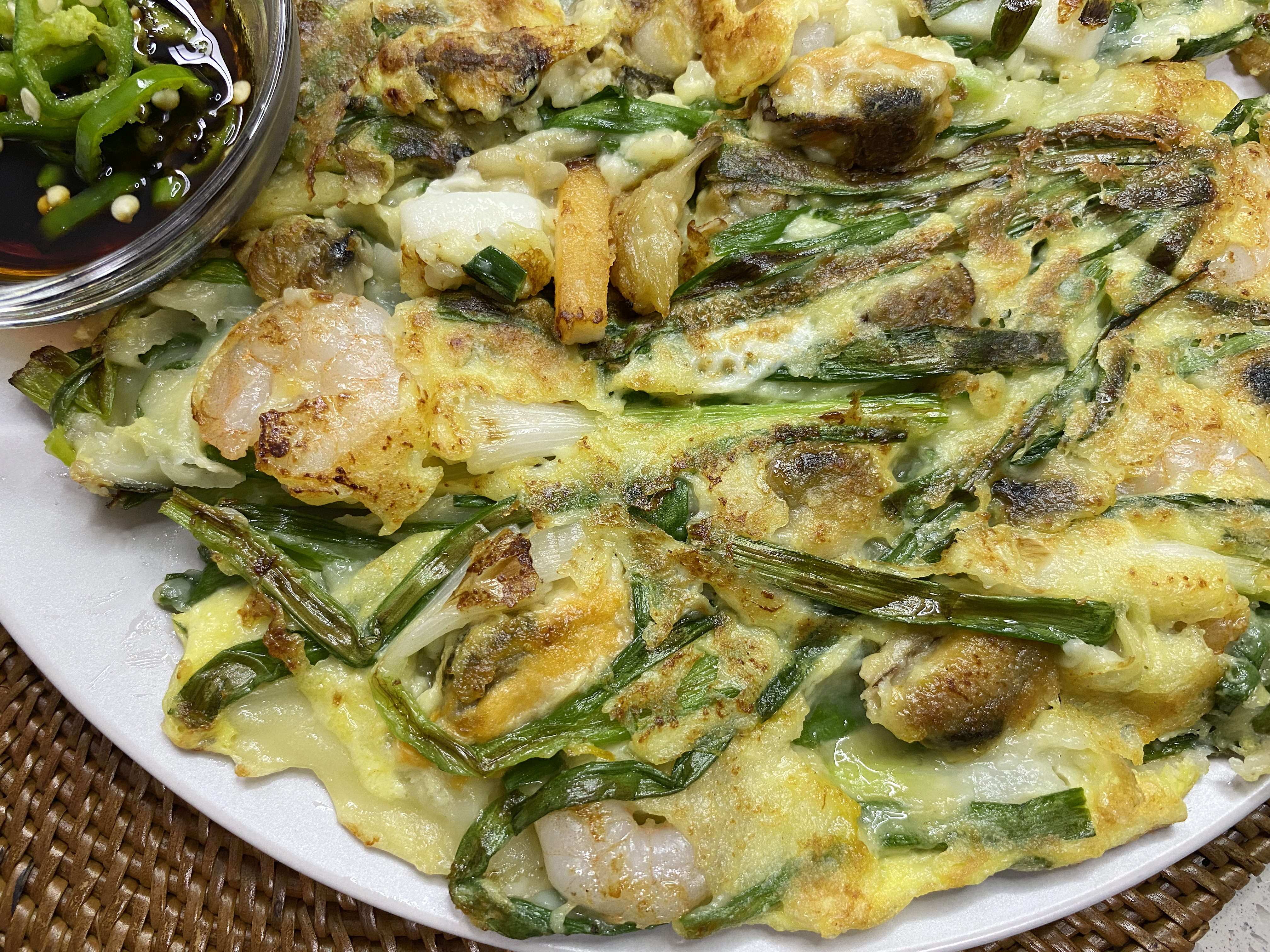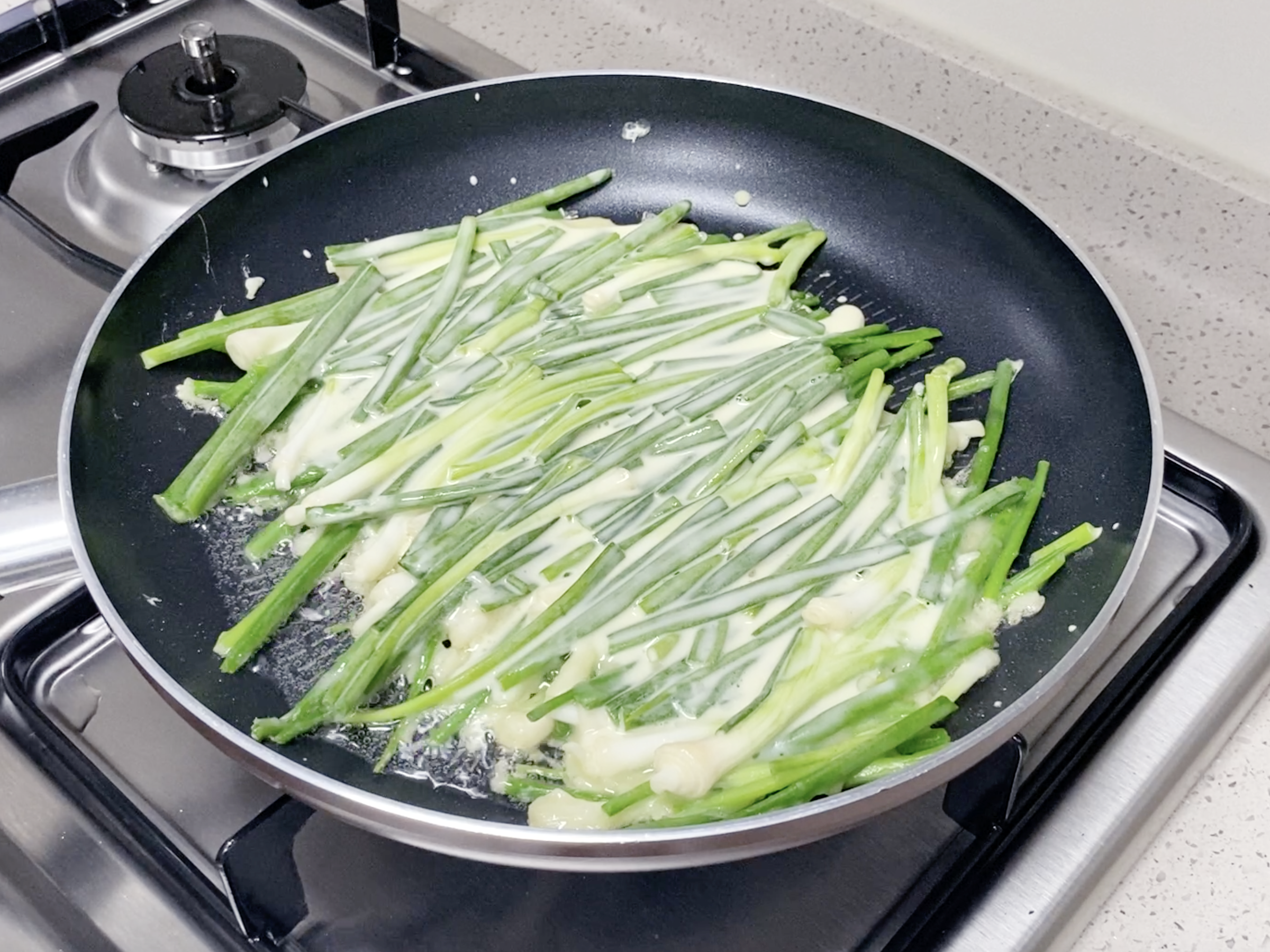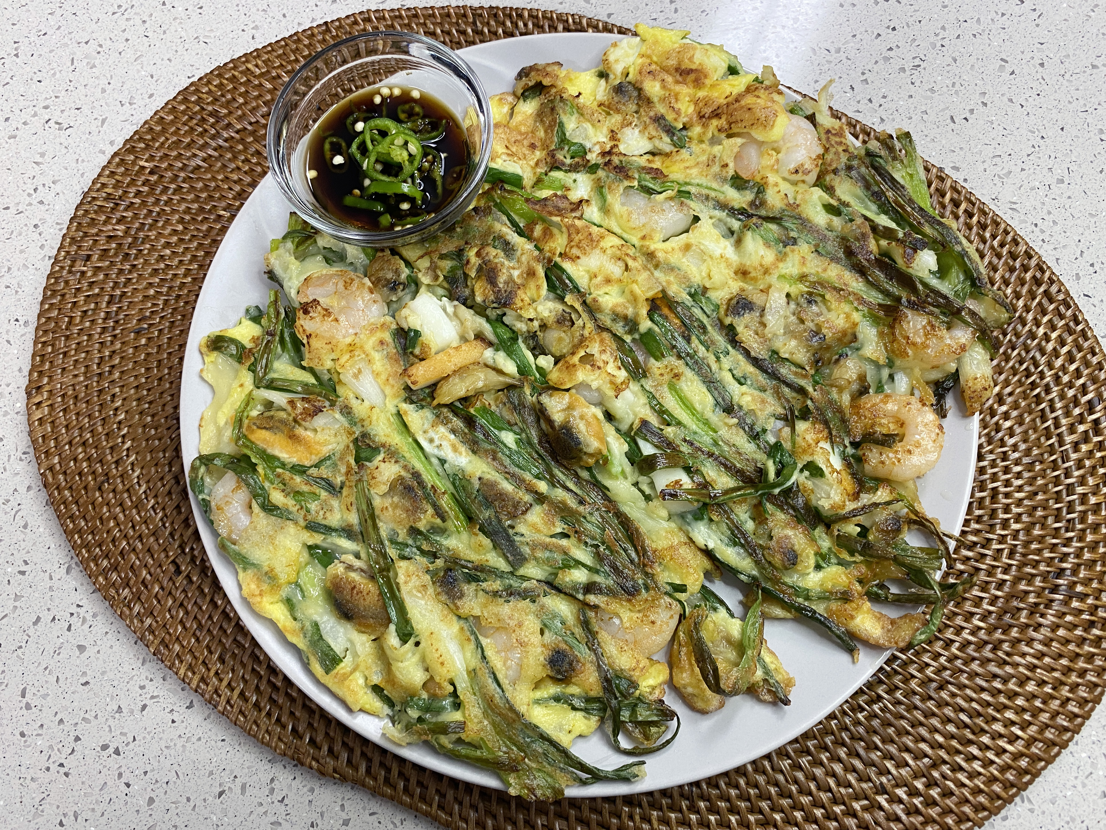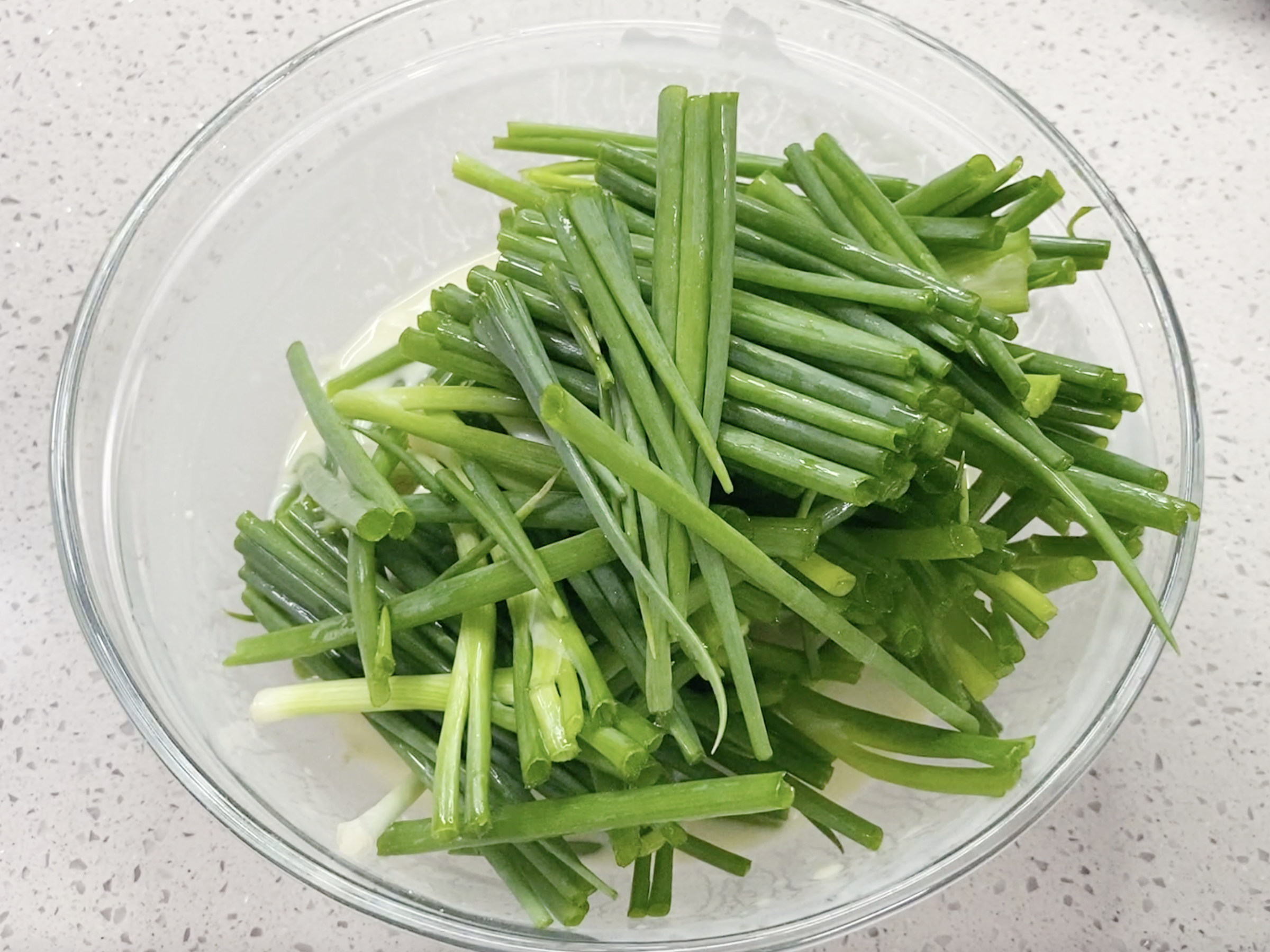 깨끗하게 씻은 쪽파를 잘라 넣고 반죽 물에 잘 섞어 주세요~