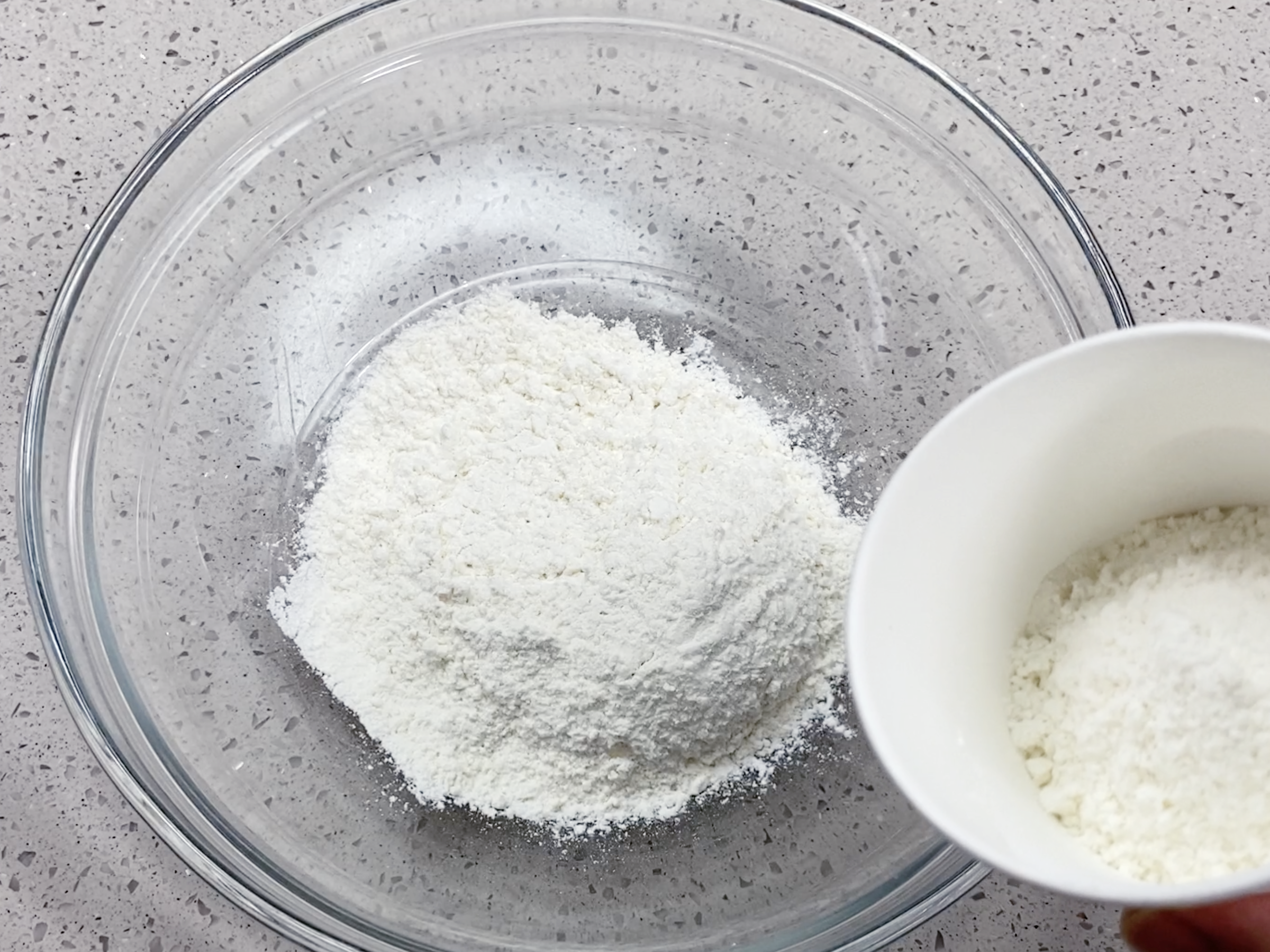부침가루 2/3컵, 튀김가루 1/3컵, 물 1컵, 참치액 1숟갈을 넣고 반죽 물을 만듭니다.