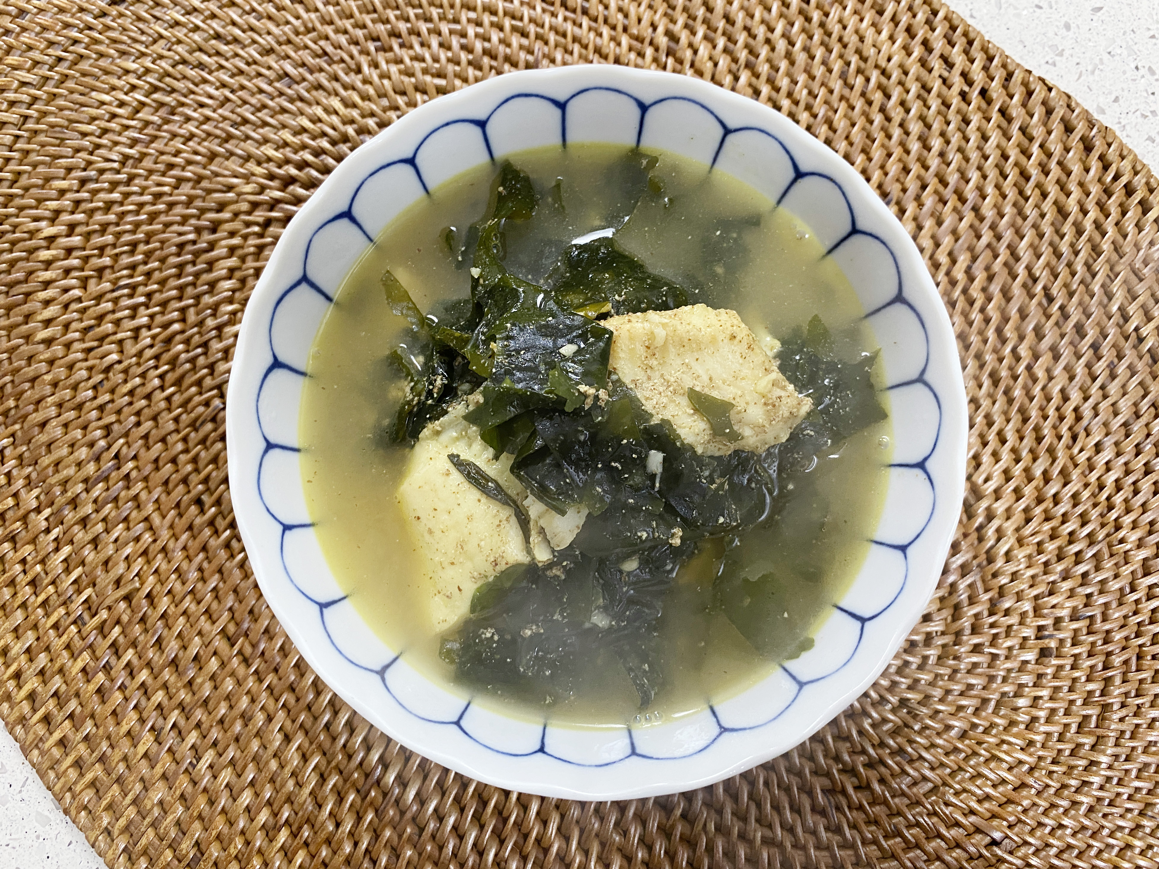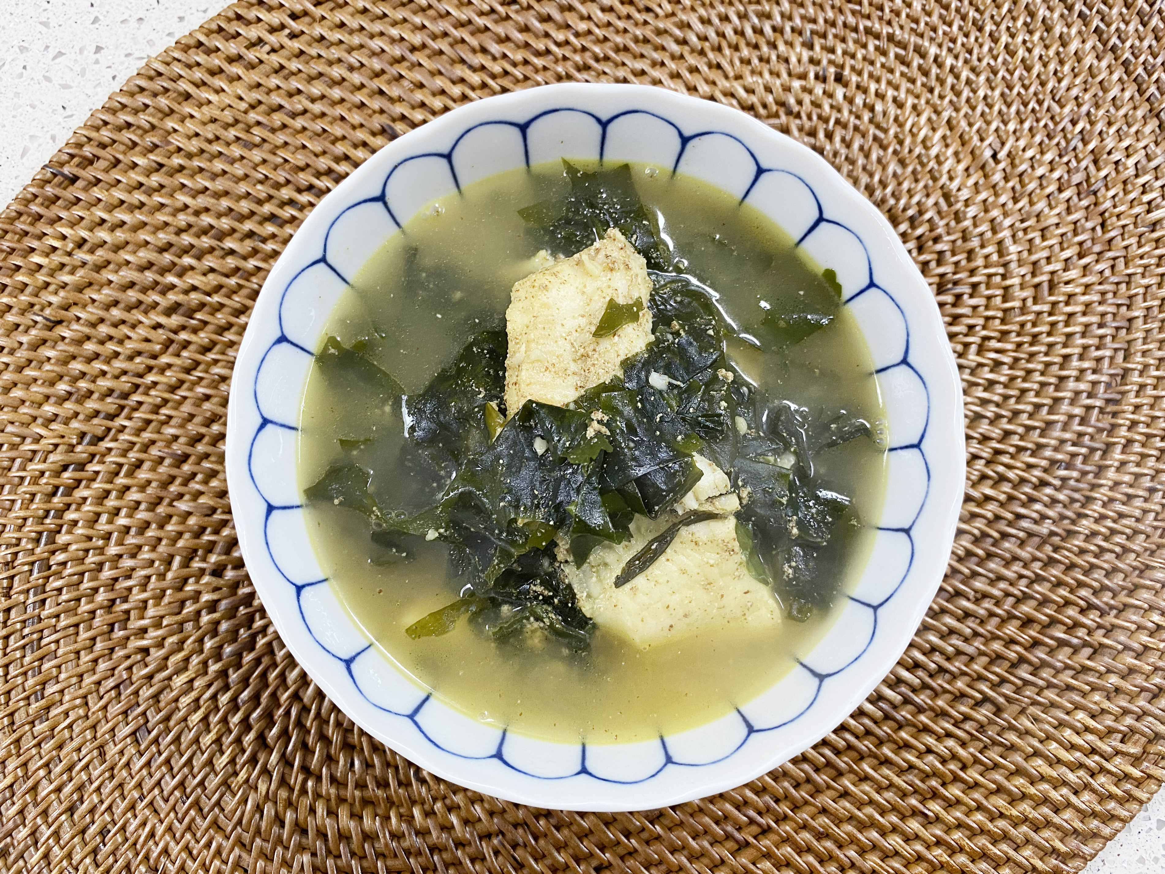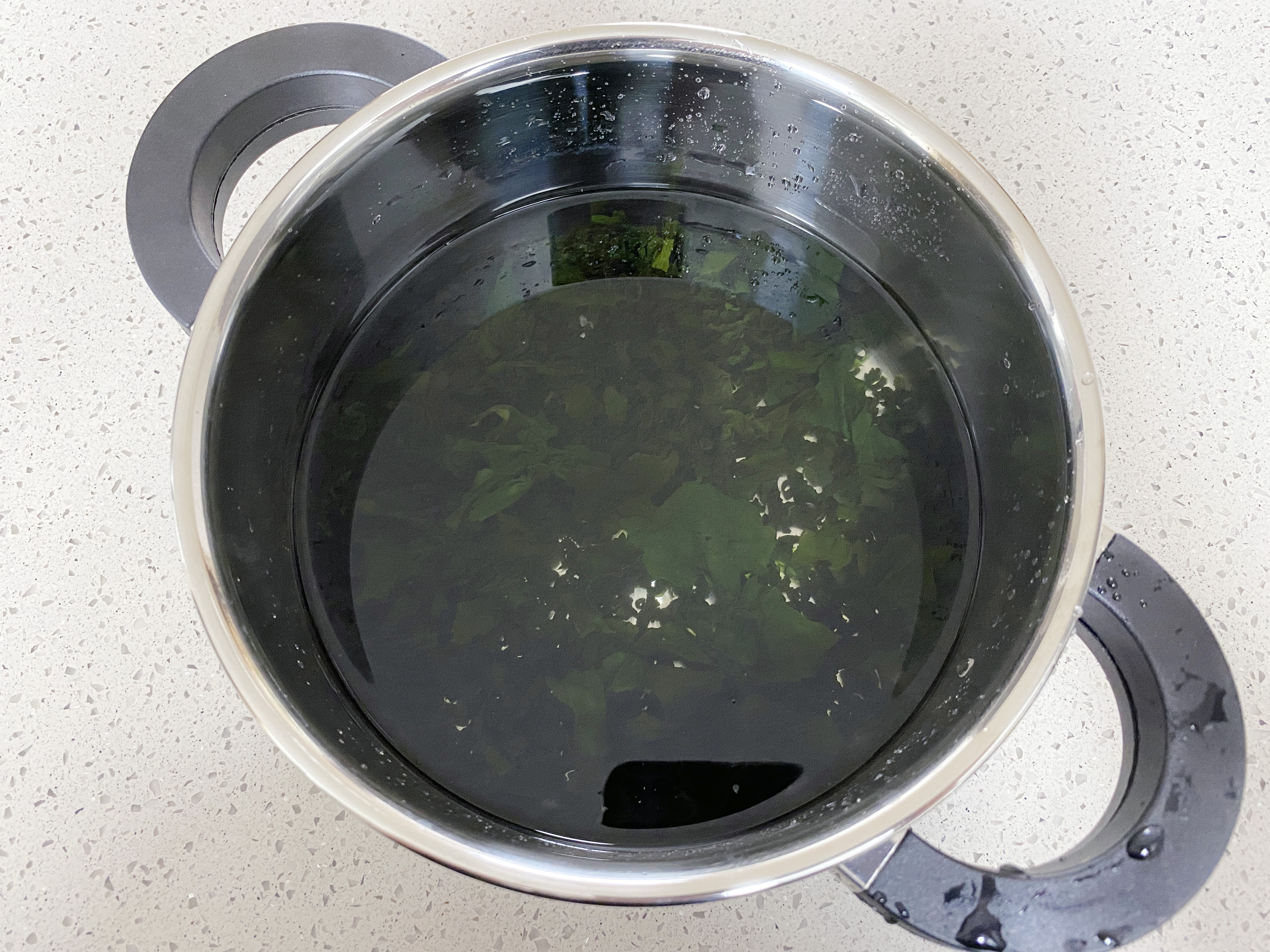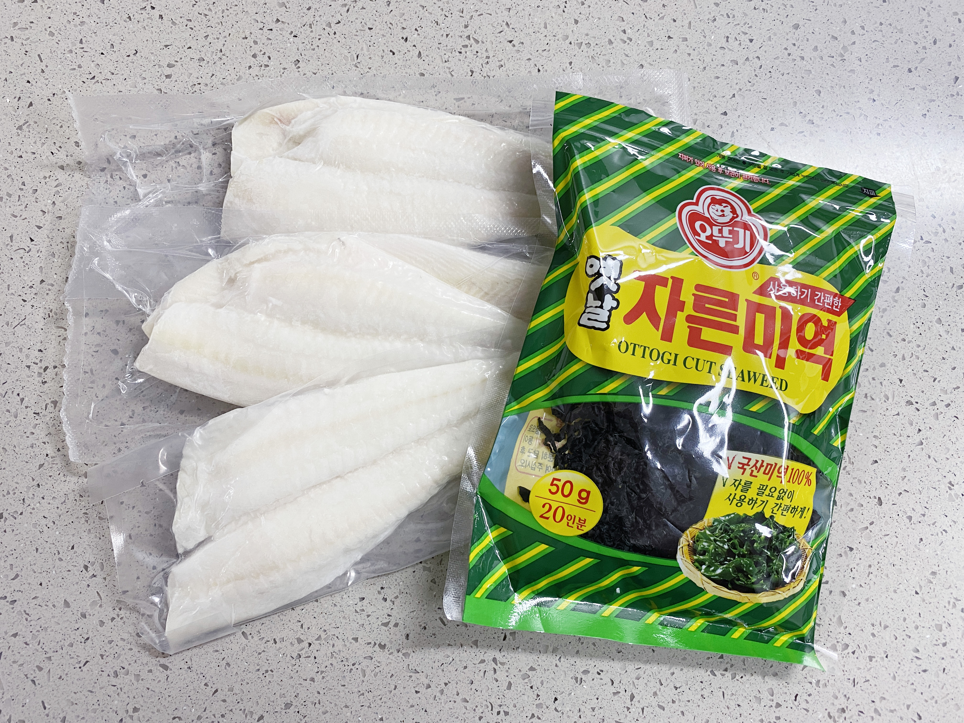 자른 미역을 끓일 냄비에 넣고 약 10분간 불립니다.