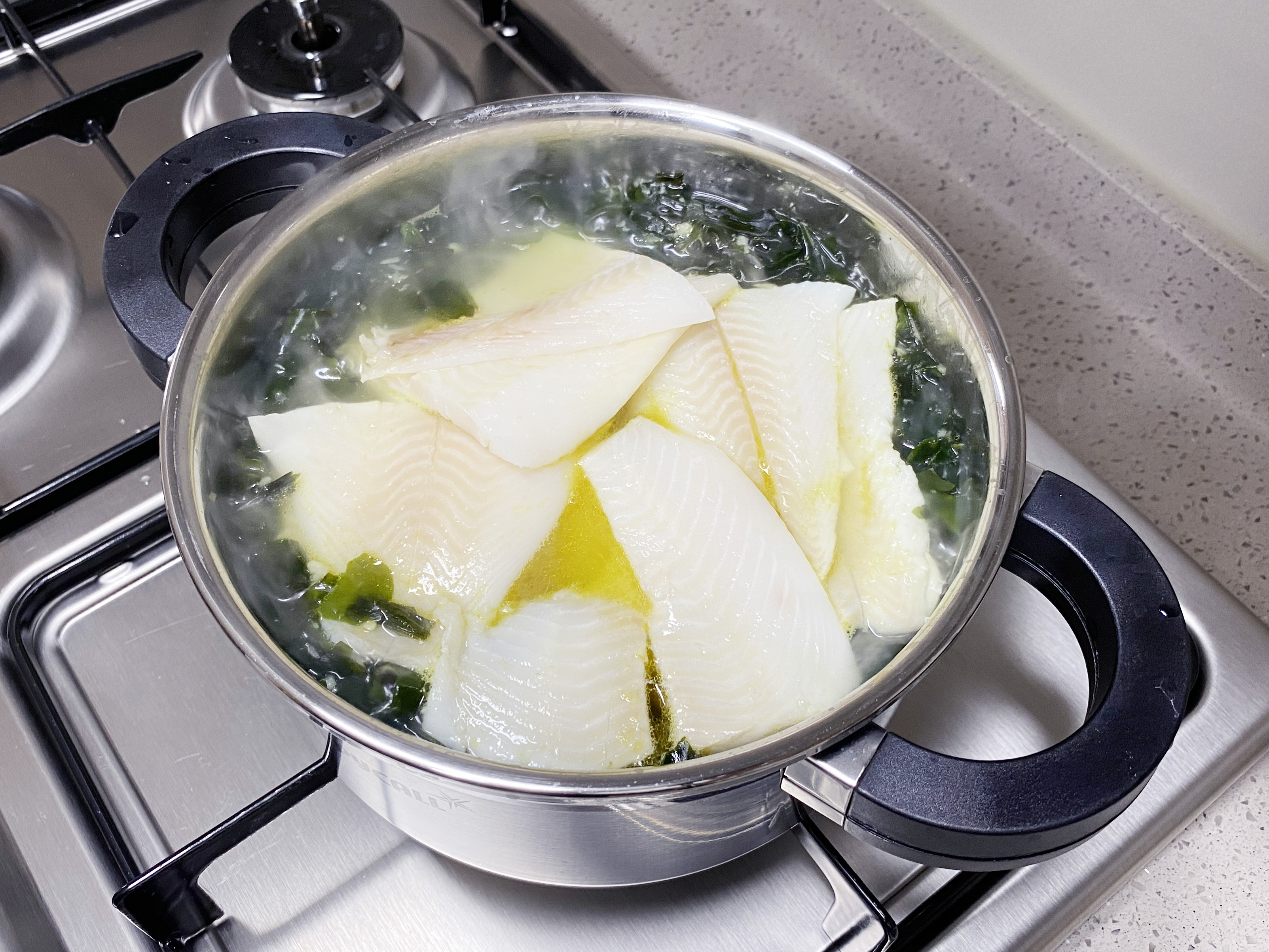 끓어오르면 가자미와 국간장 2숟갈을 넣어 간을 한 다음,