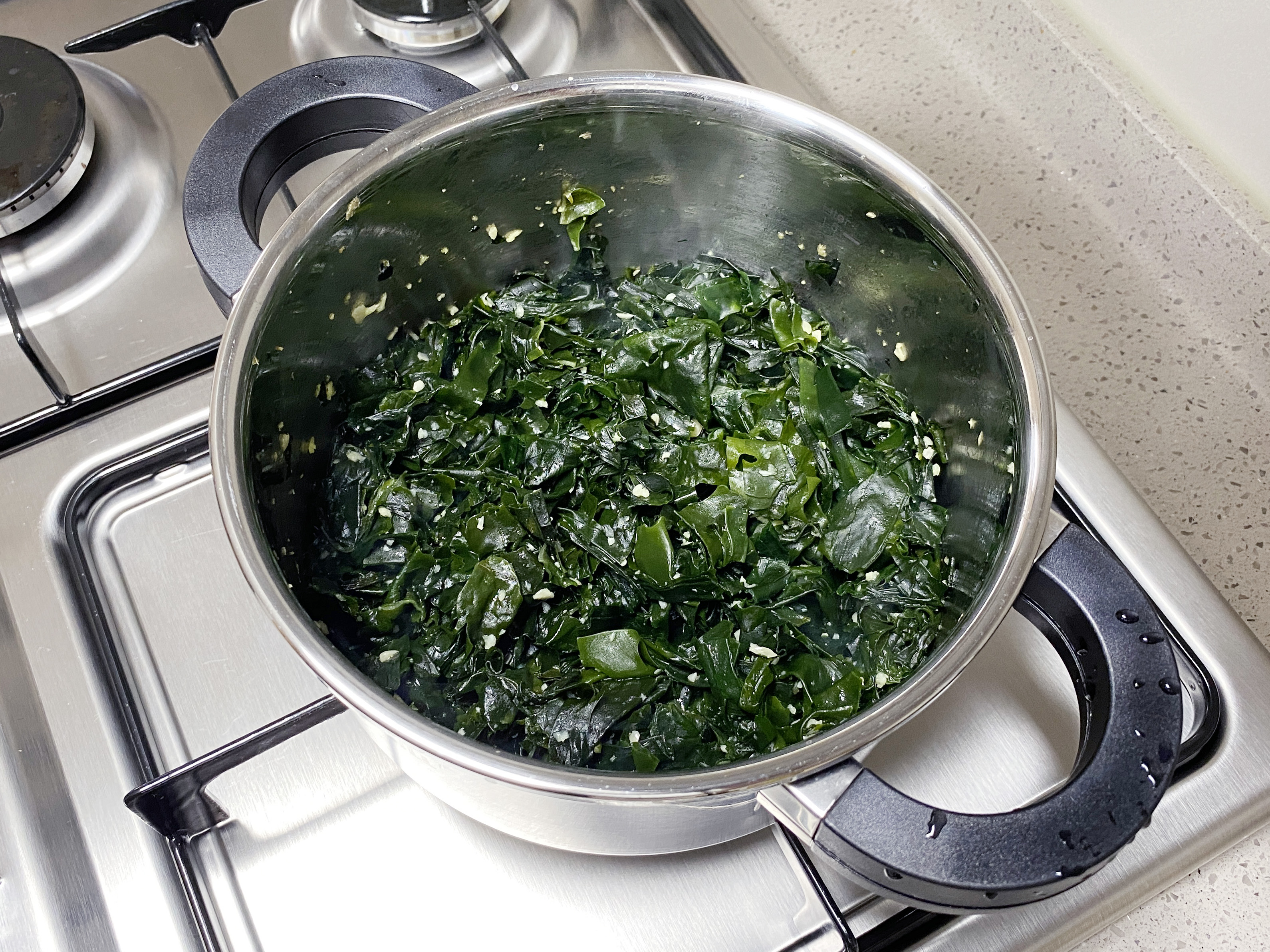 미역이 부드럽게 볶아지면 물을 붓고 끓여 줍니다.