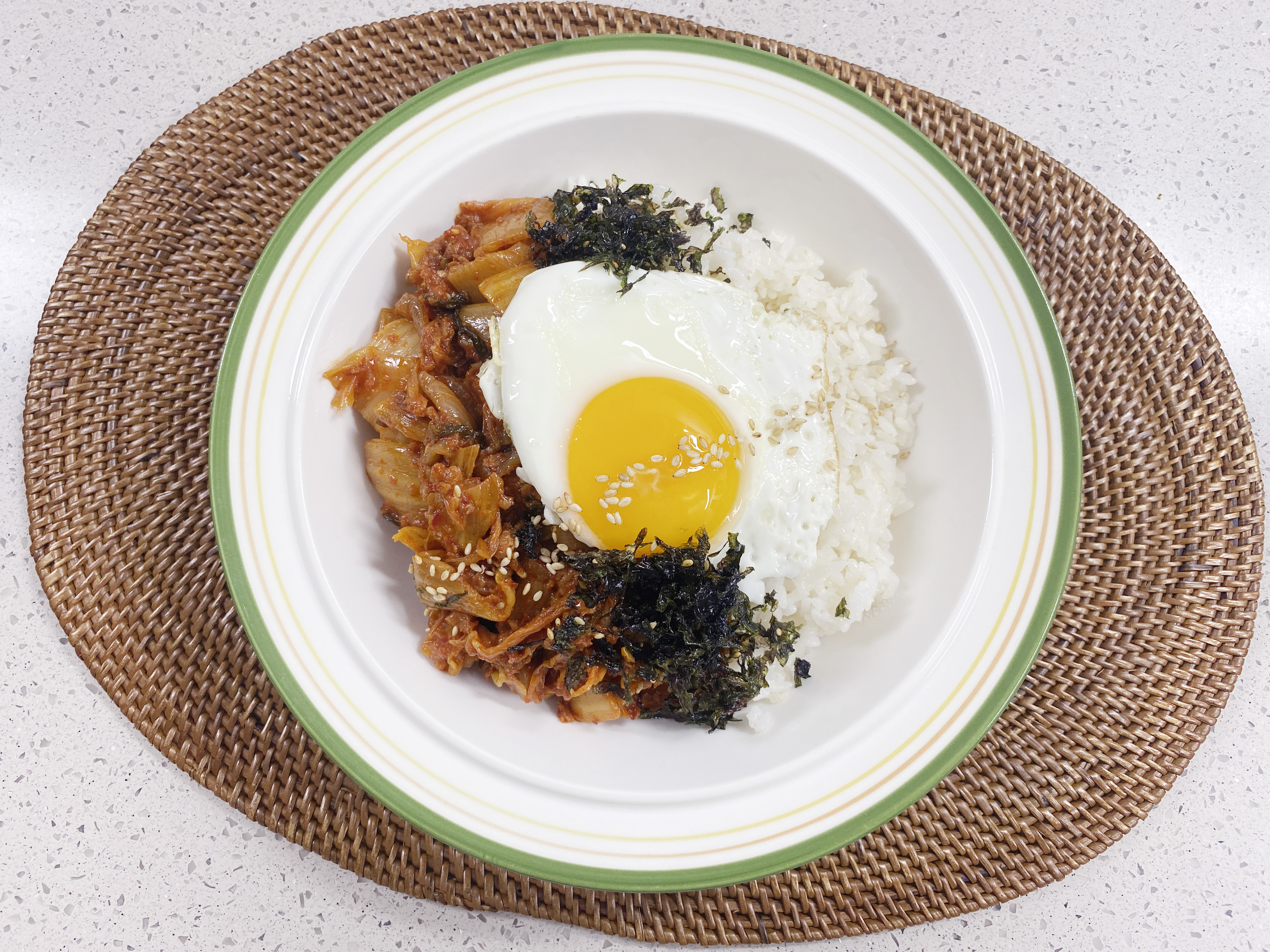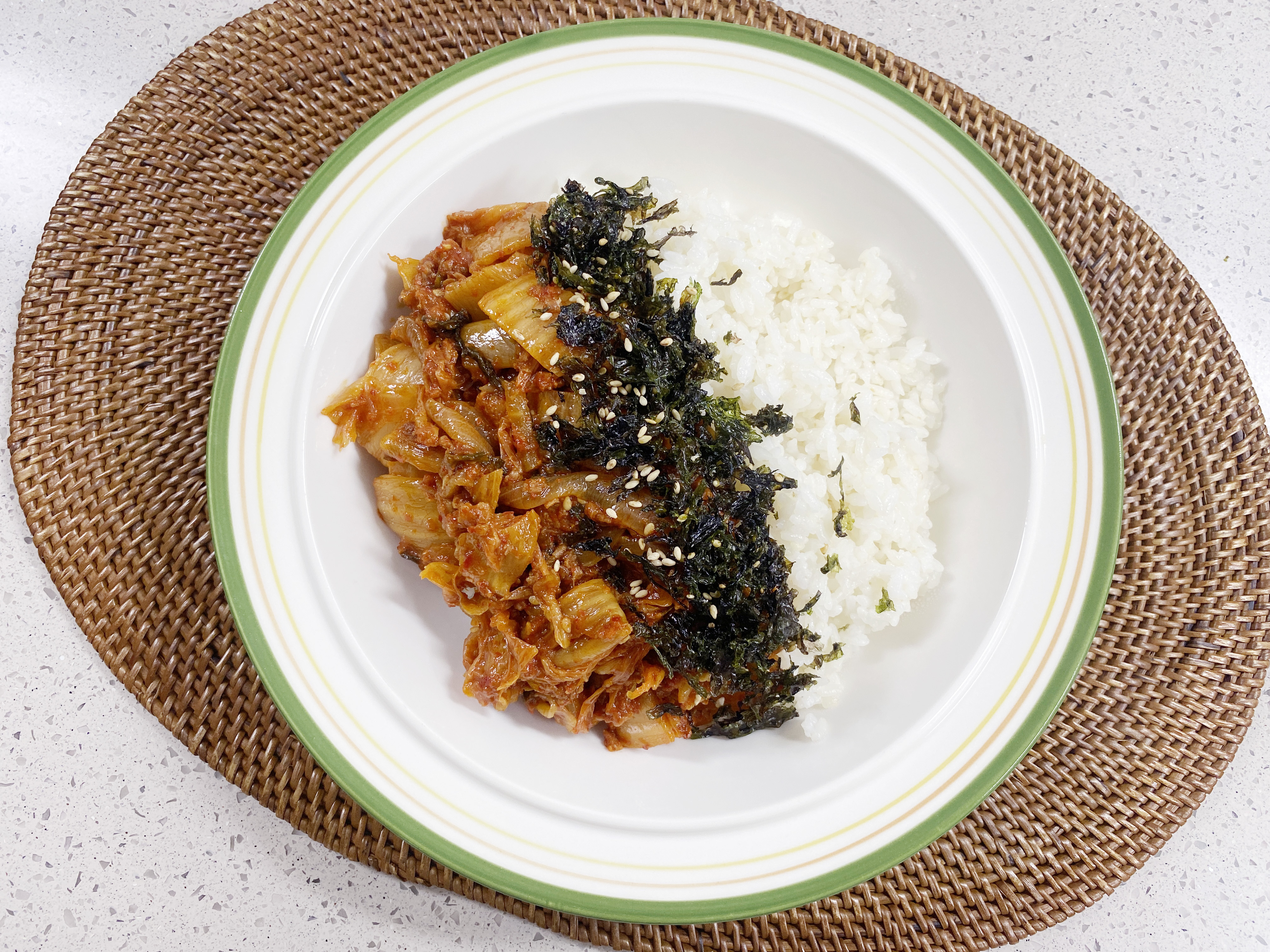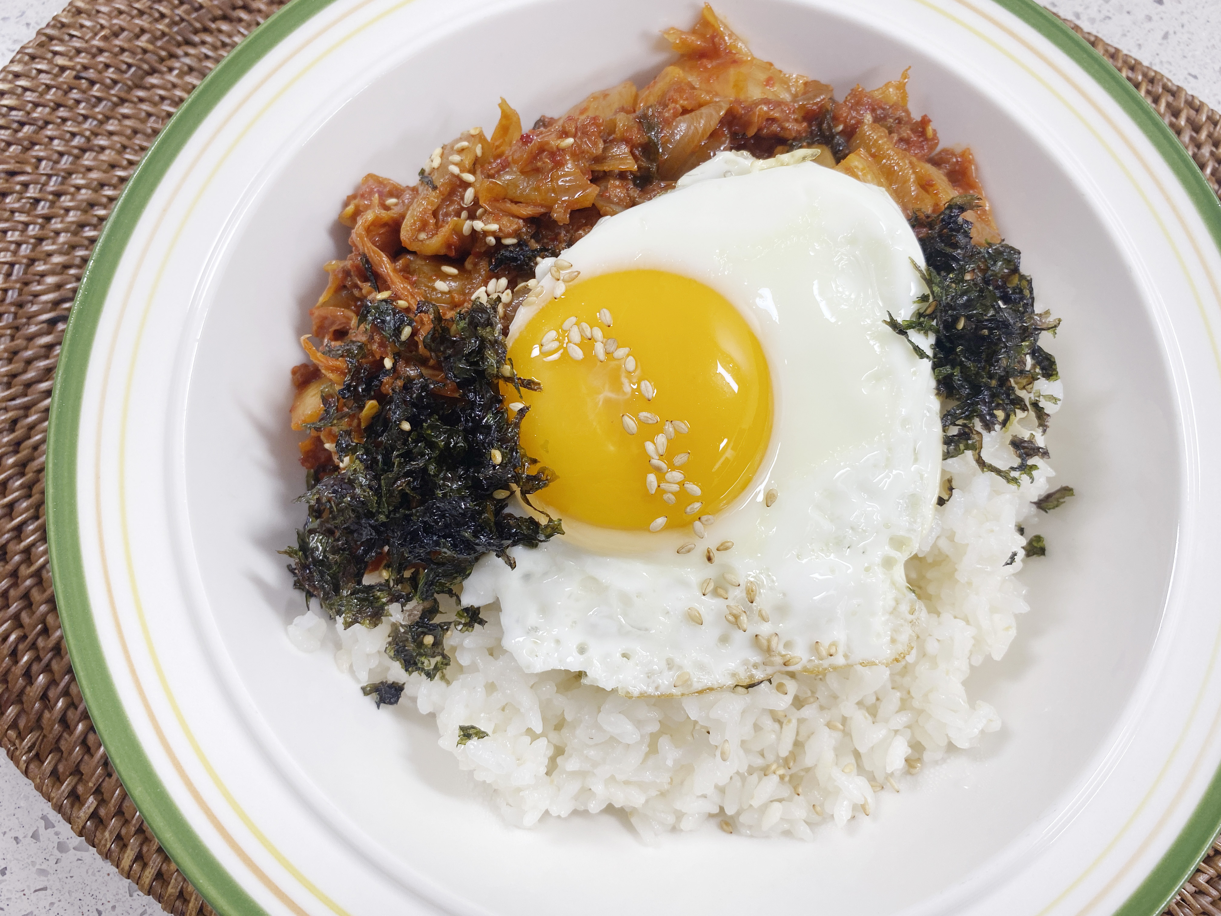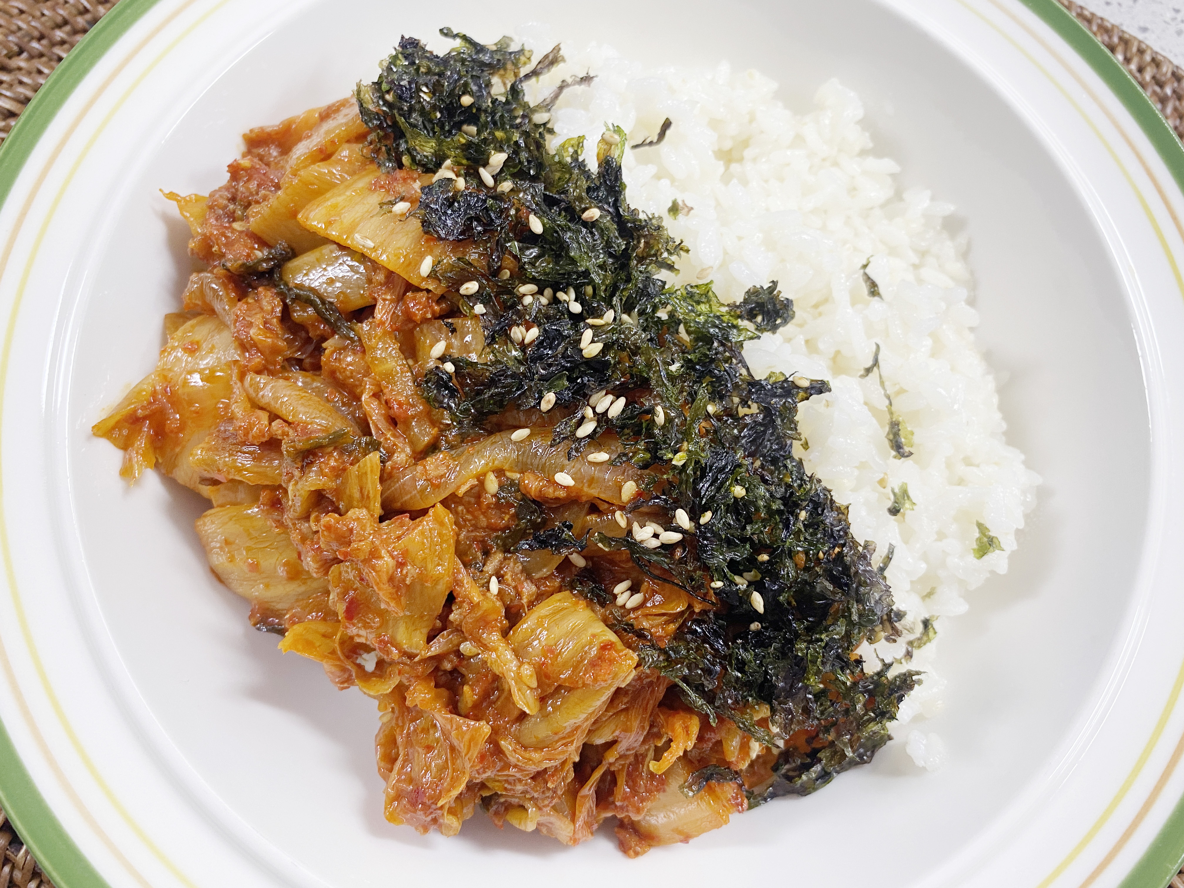 볶음김치와 김가루를 솔솔 뿌리고 ..