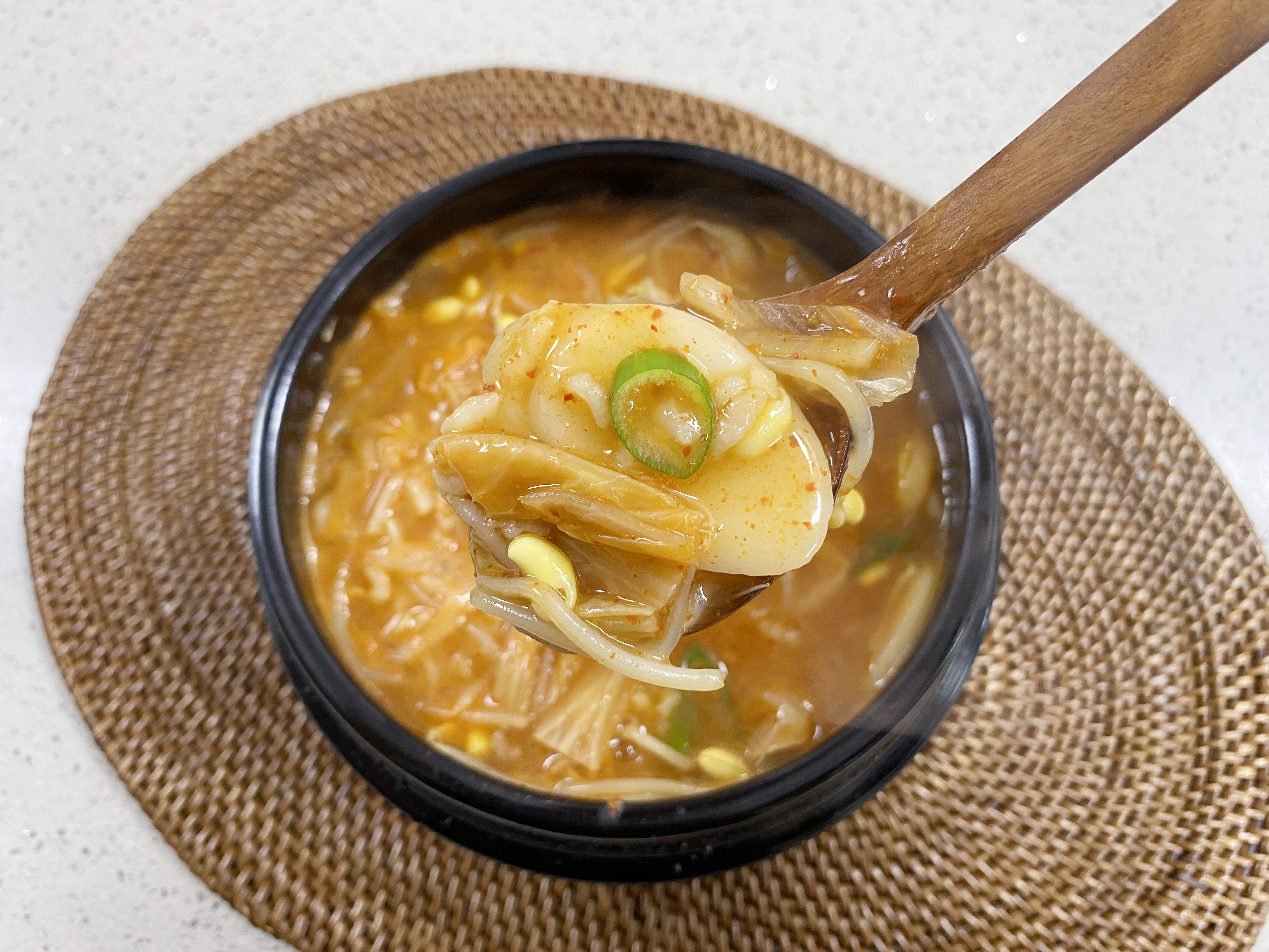 (저는 디포리 해물 팩과 물 2리터를 넣고 끓여 주었는데요.. 멸치 다시마육수가 더 좋아용)
