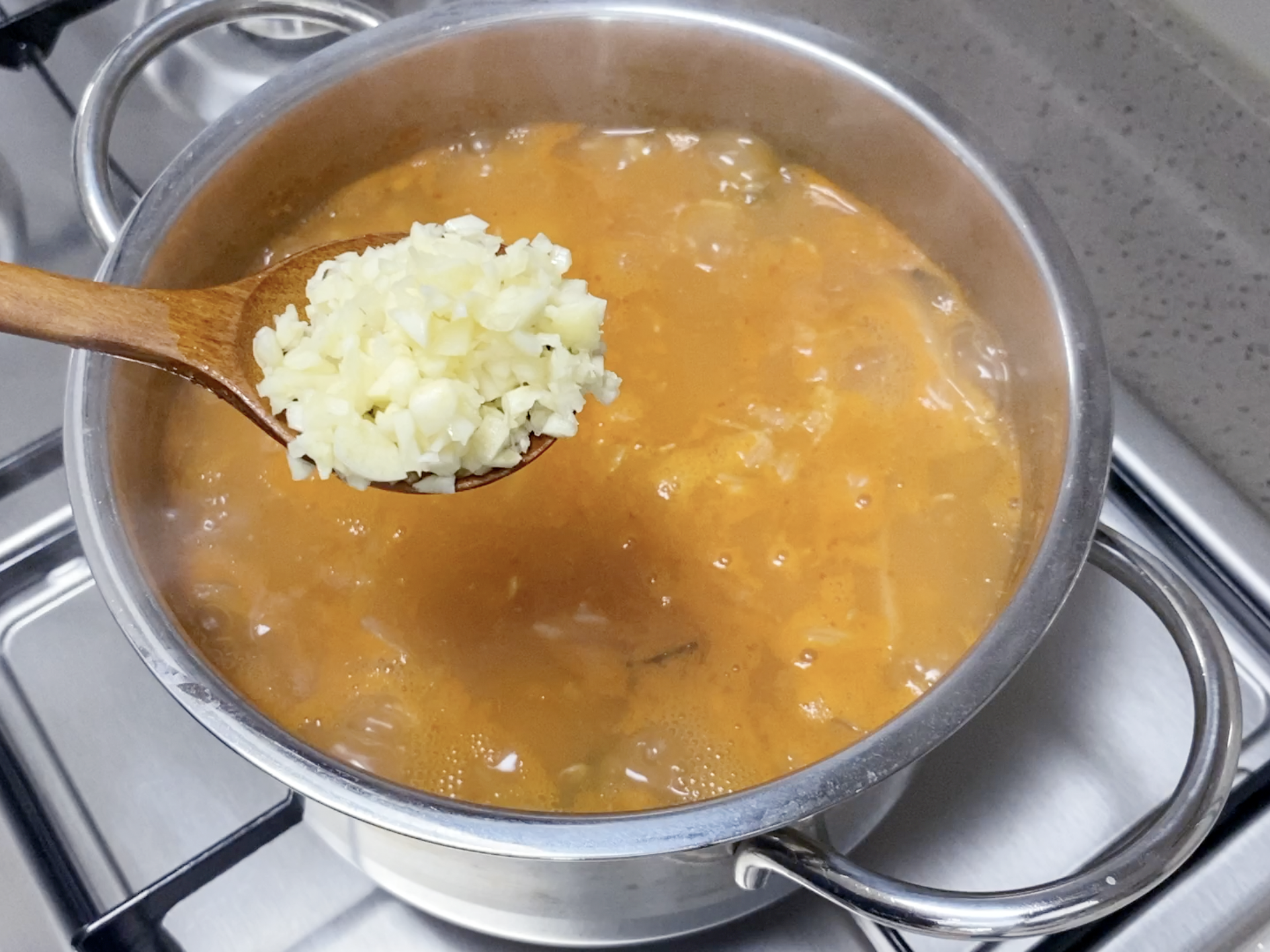 다진 마늘 1숟갈과 고춧가루 1숟갈을 넣고 뭉근하게 끓여 주세요