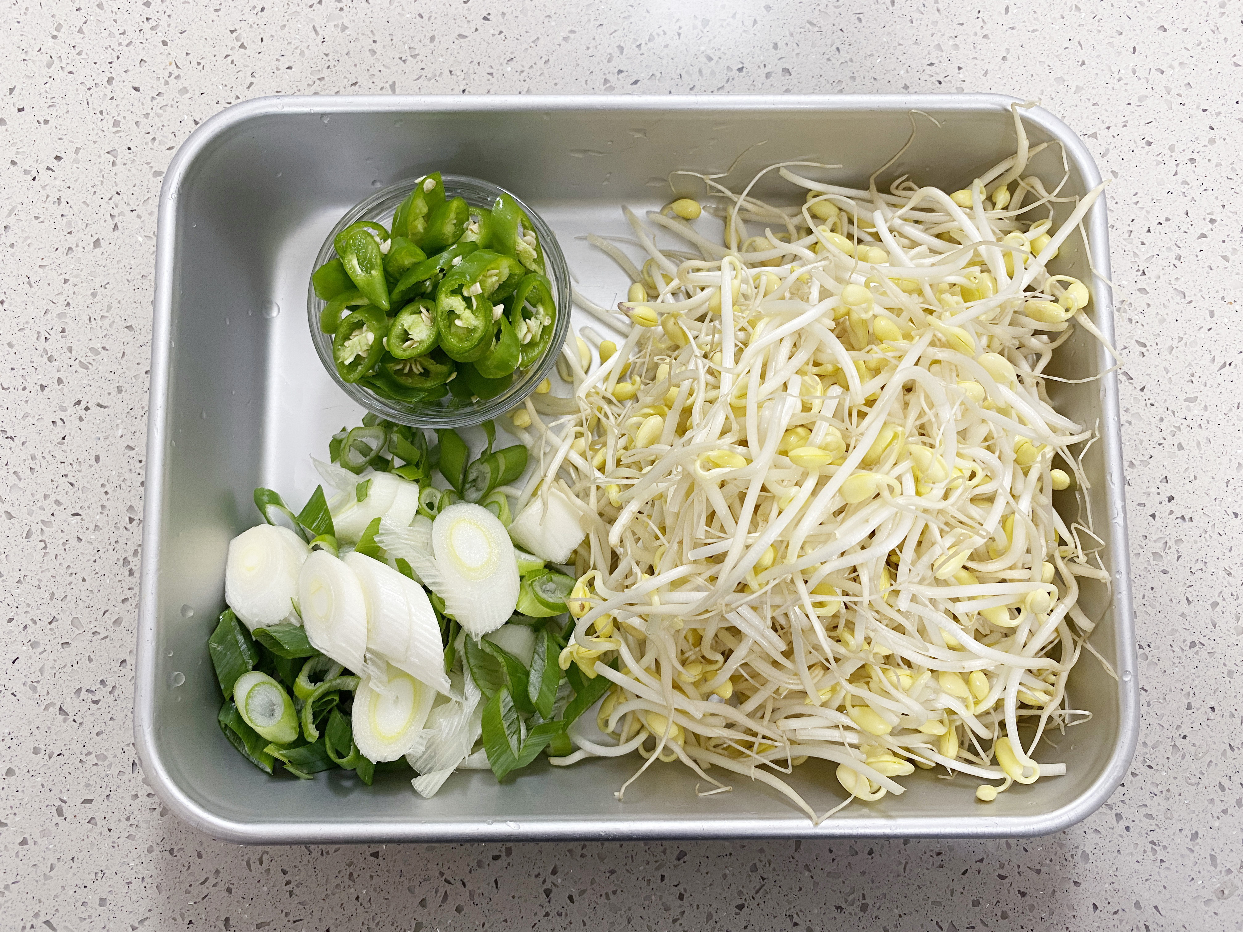 깨끗하게 씻은 다음 대파와 청양고추는 송송 썰어 줍니다.