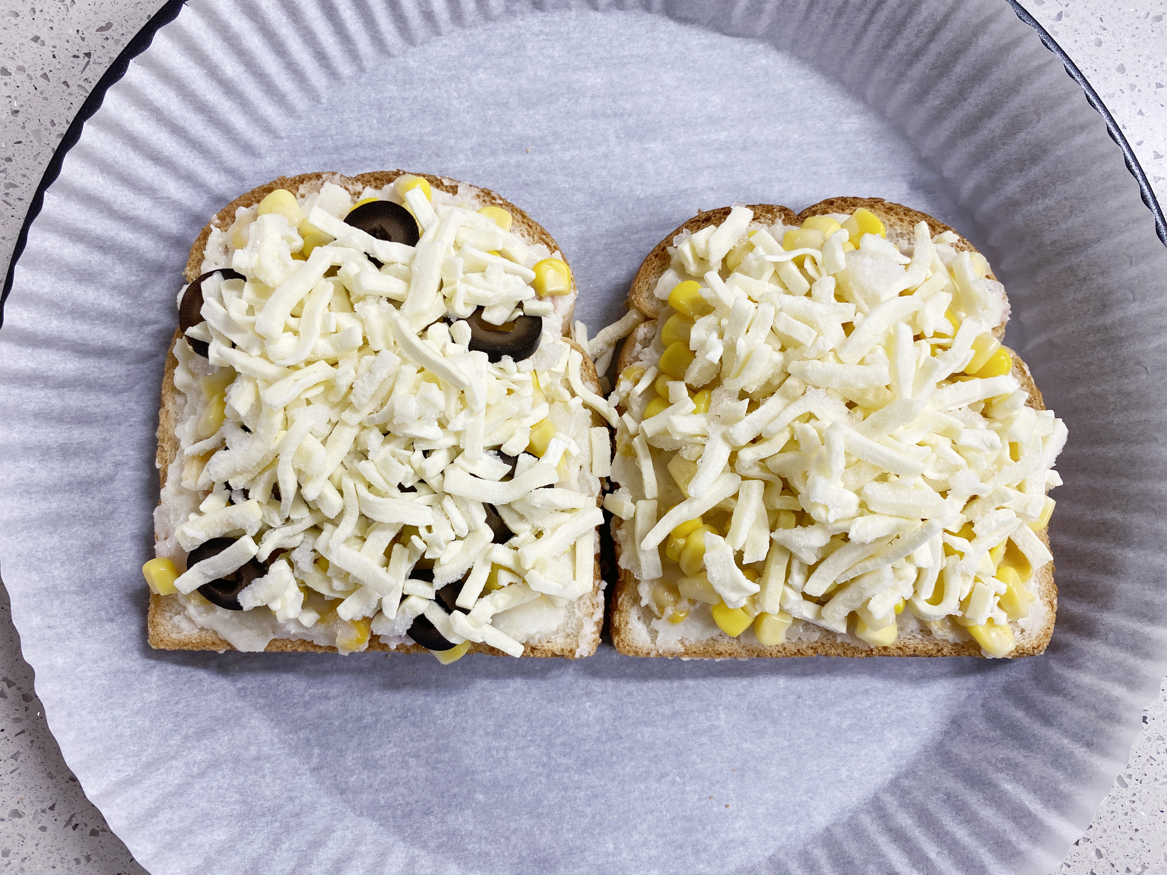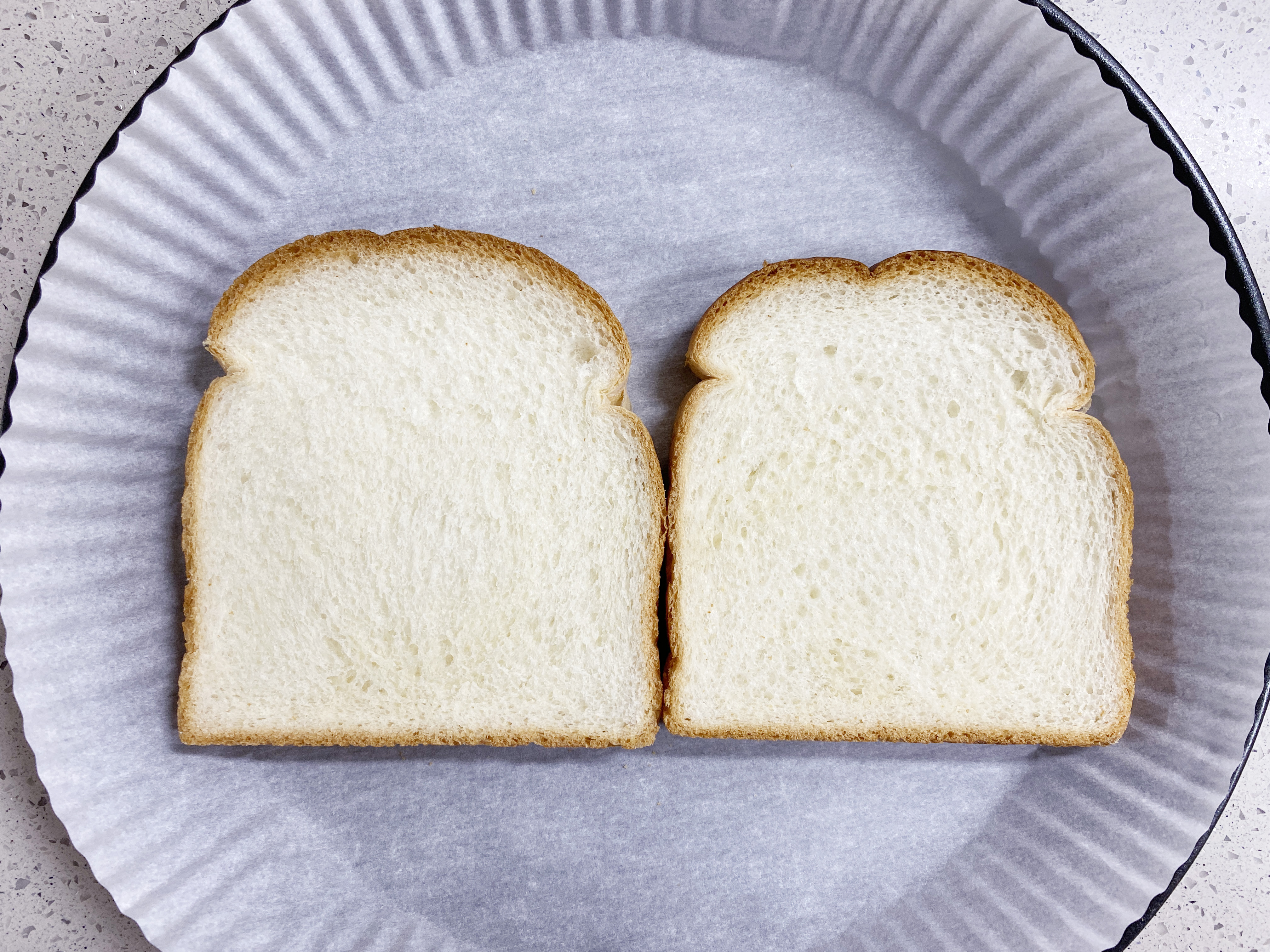 식빵 두쪽을 종이 포일에 살포시 올리고