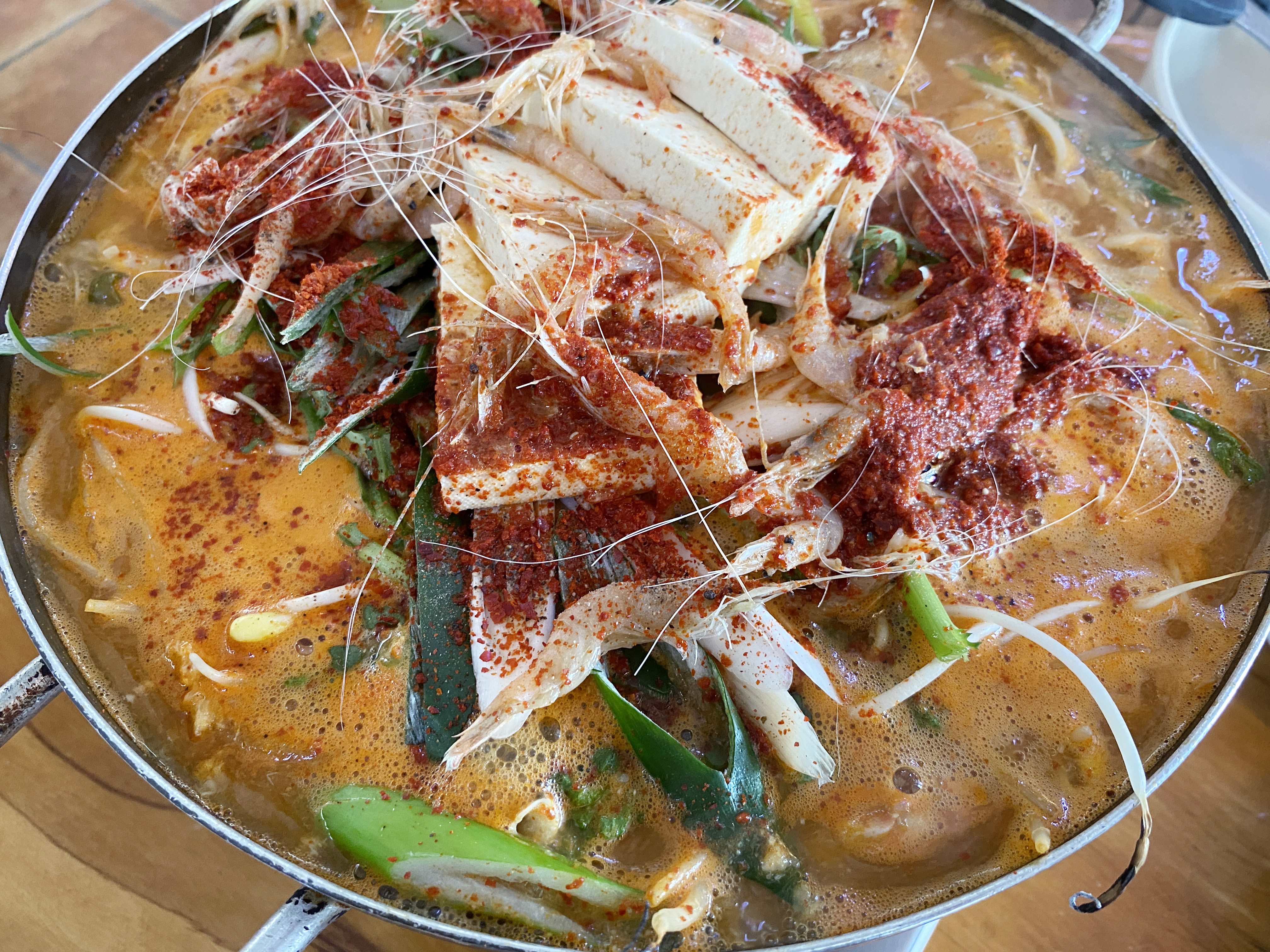 큼직한 새우와 두툼한 두부, 미나리, 콩나물