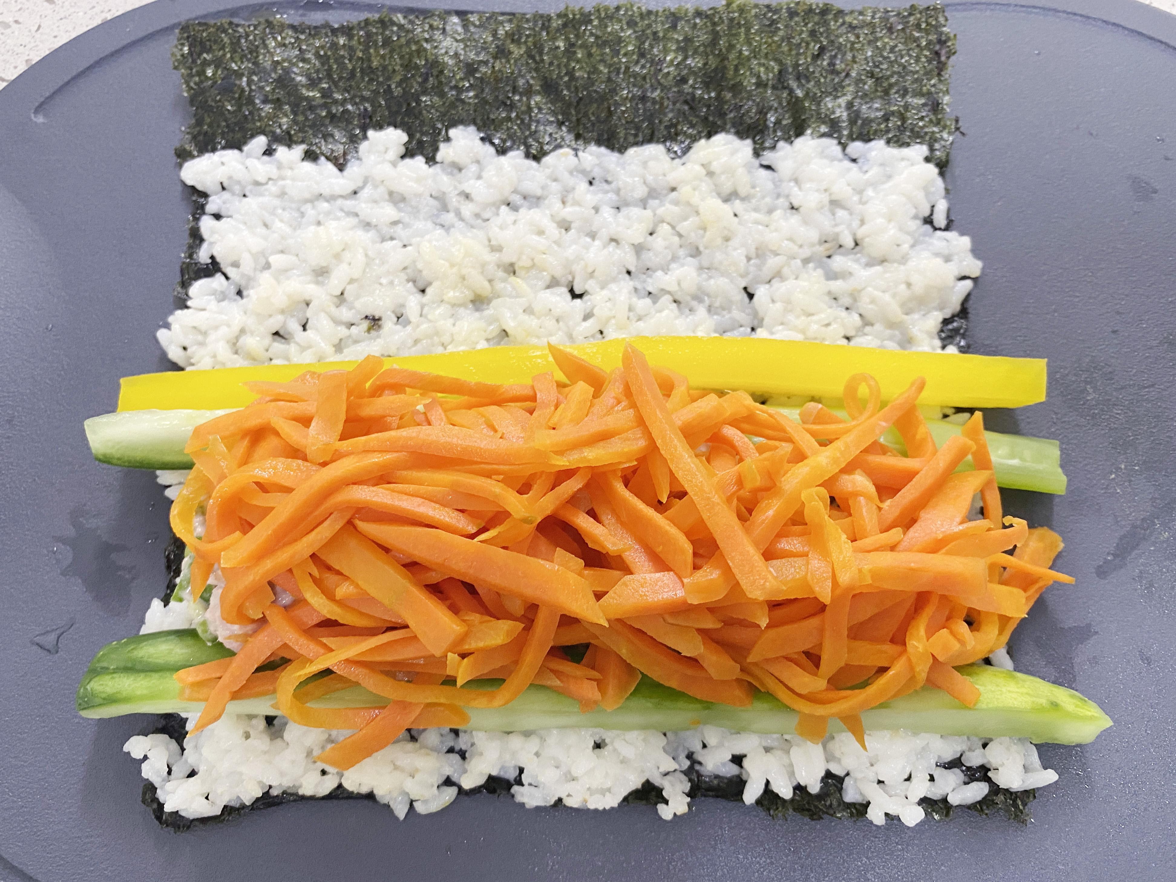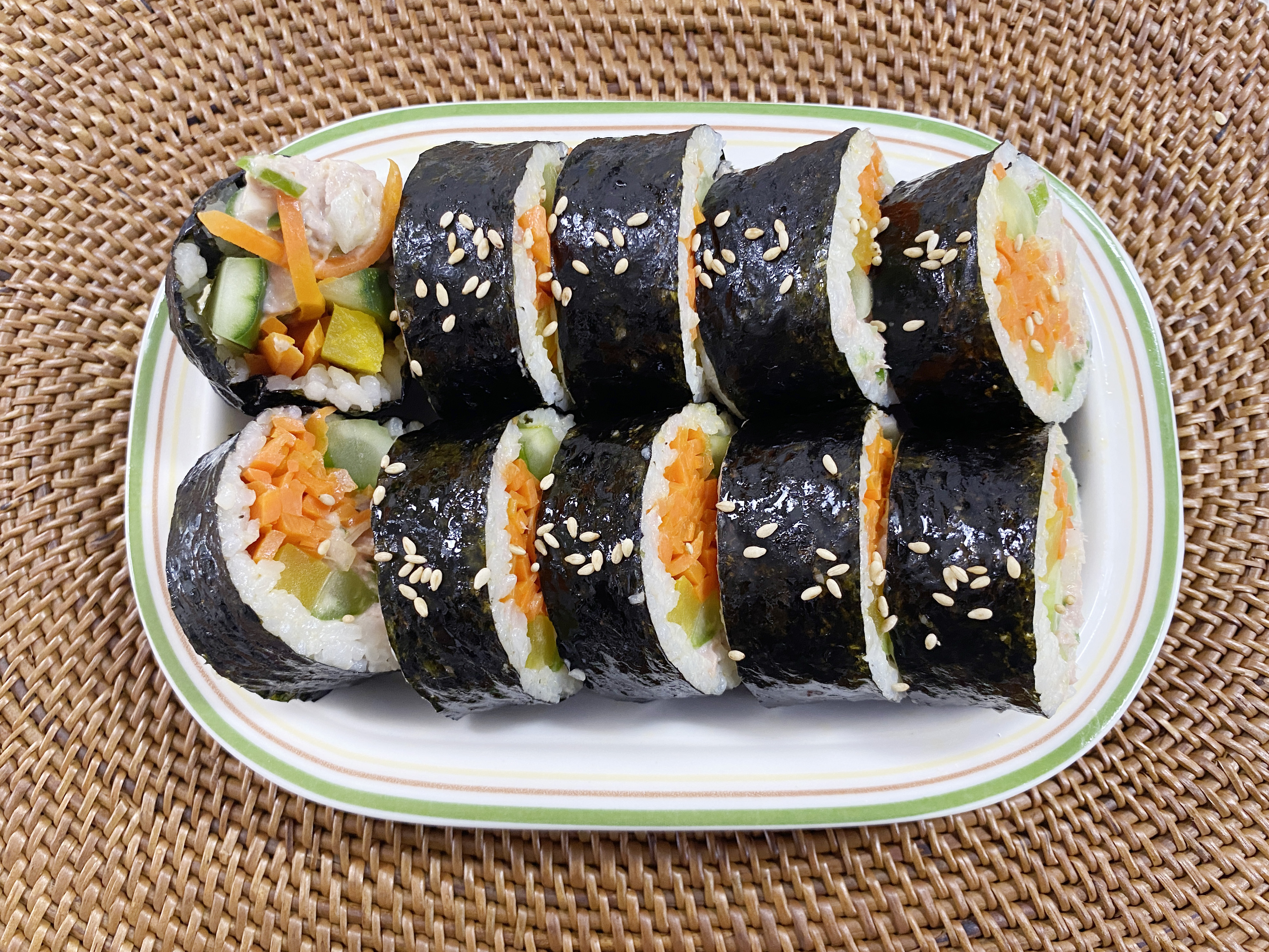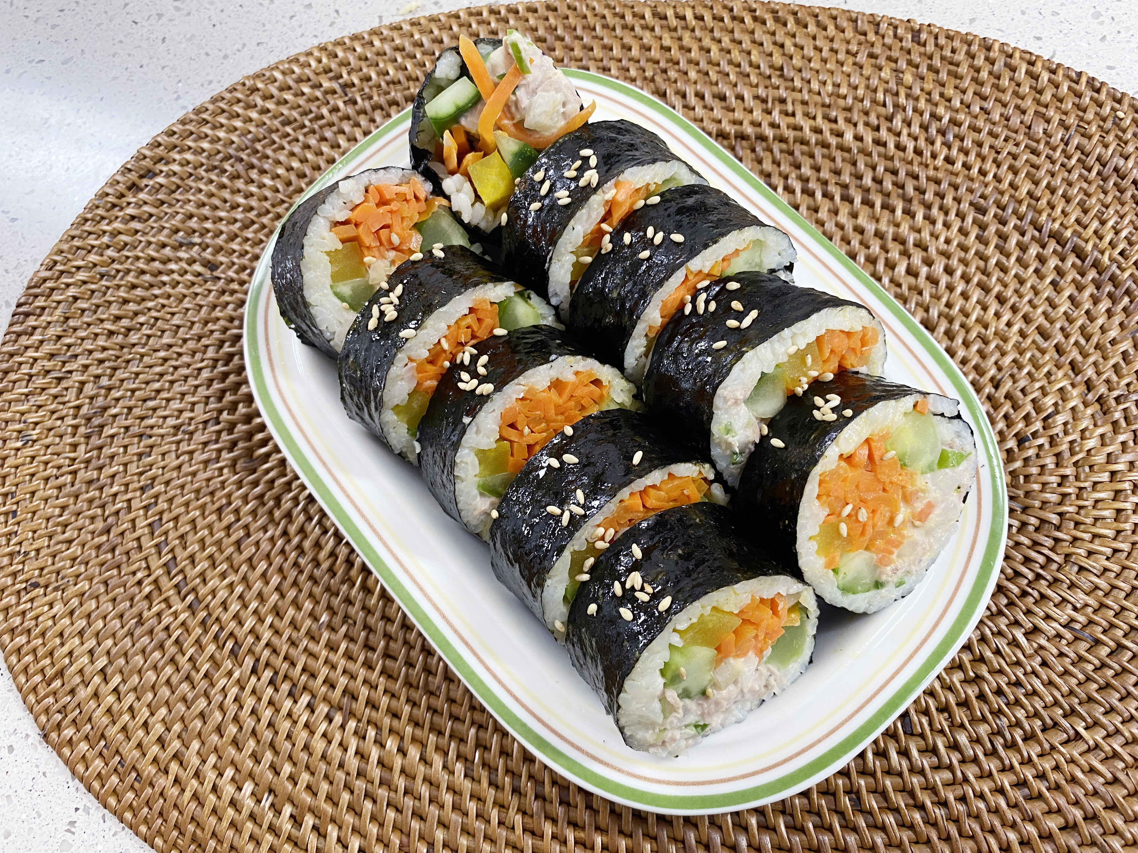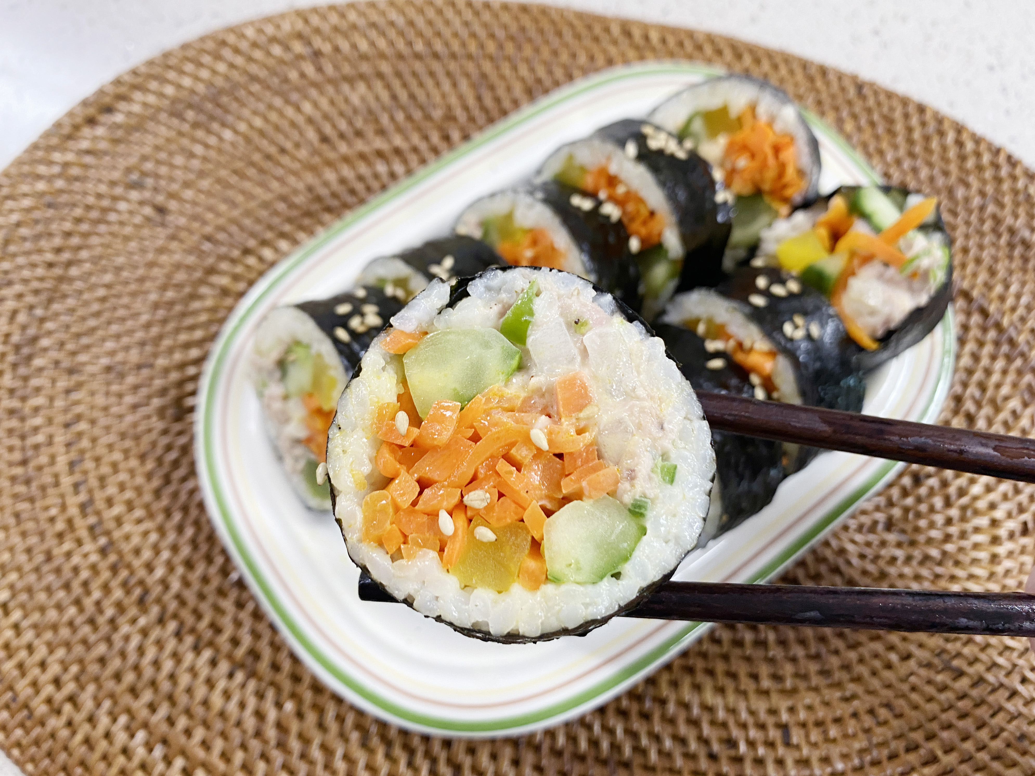 남은 채소로 참치 김밥을 만들어 먹었어요