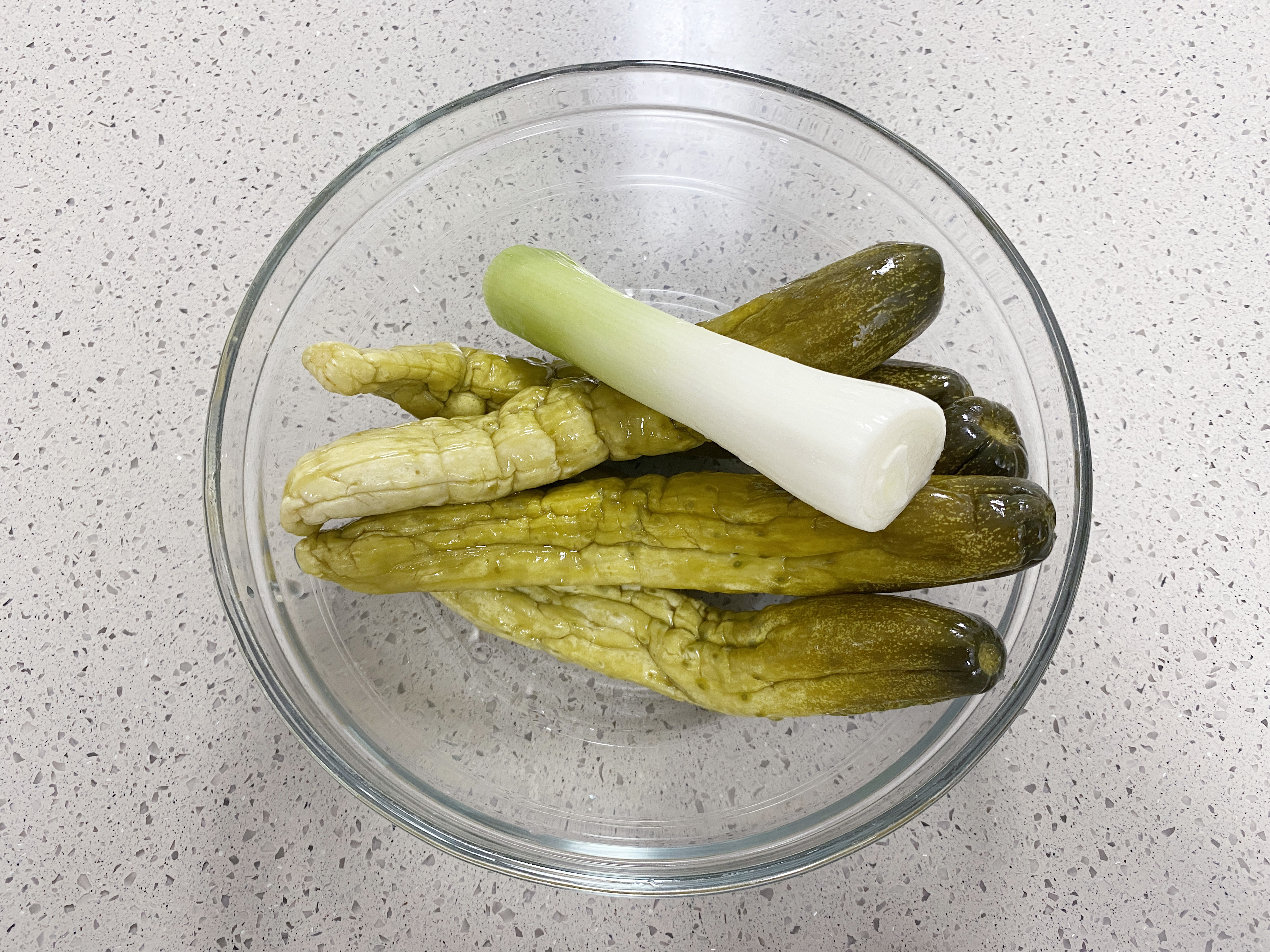 오늘처럼 푹푹 찌는 날씨에 딱인!! 오이지를 맛있게 무쳐서 오이지 비빔국수로도 만들어 볼게요~ [오이지무침 재료] 오이지 6개 매실액 3숟갈 고춧가루 2숟갈 참기름 2숟갈 간 마늘 1숟갈 통깨 ※