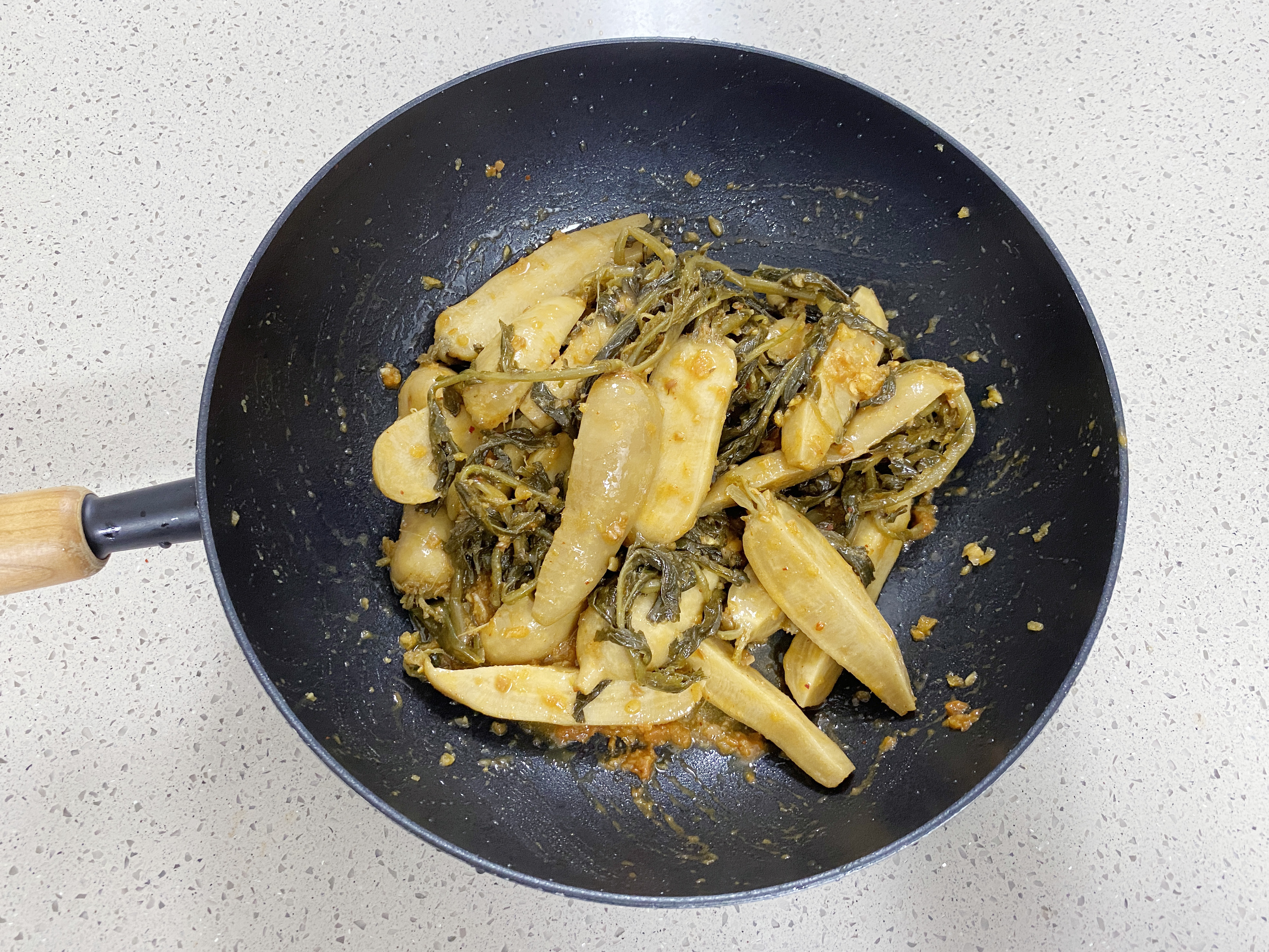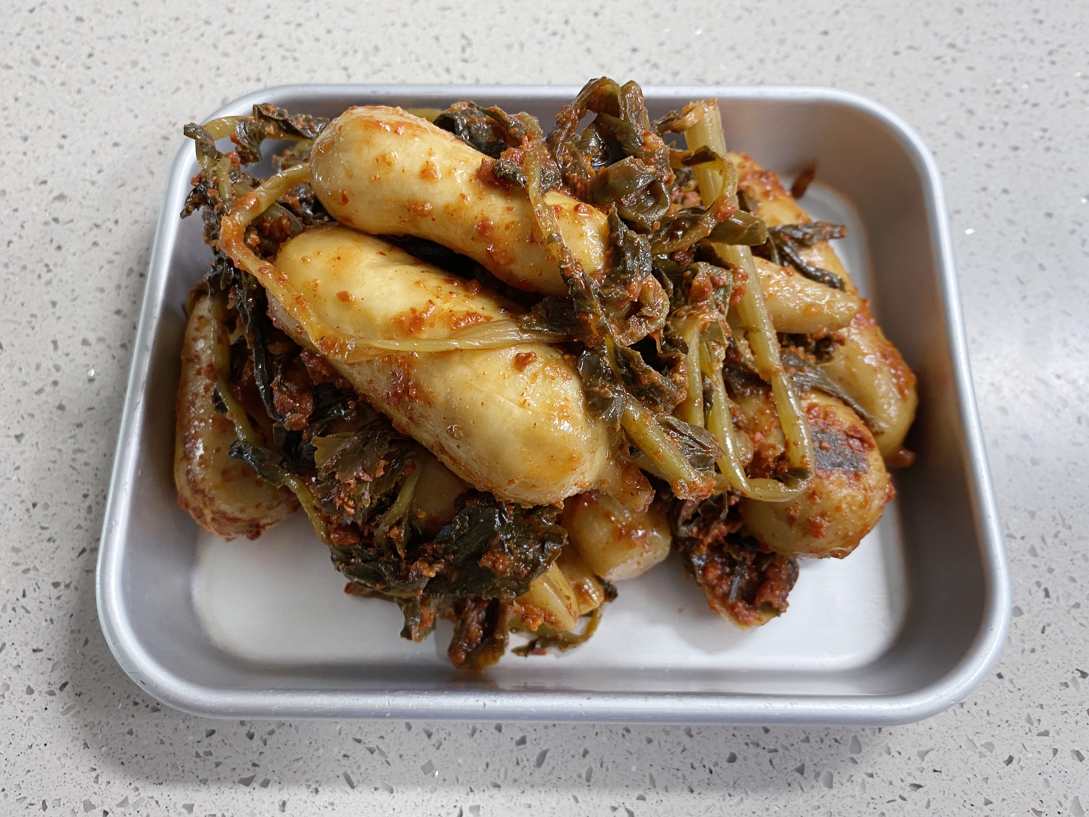 무김치는 물로 헹궈 물기를 빼준 다음,