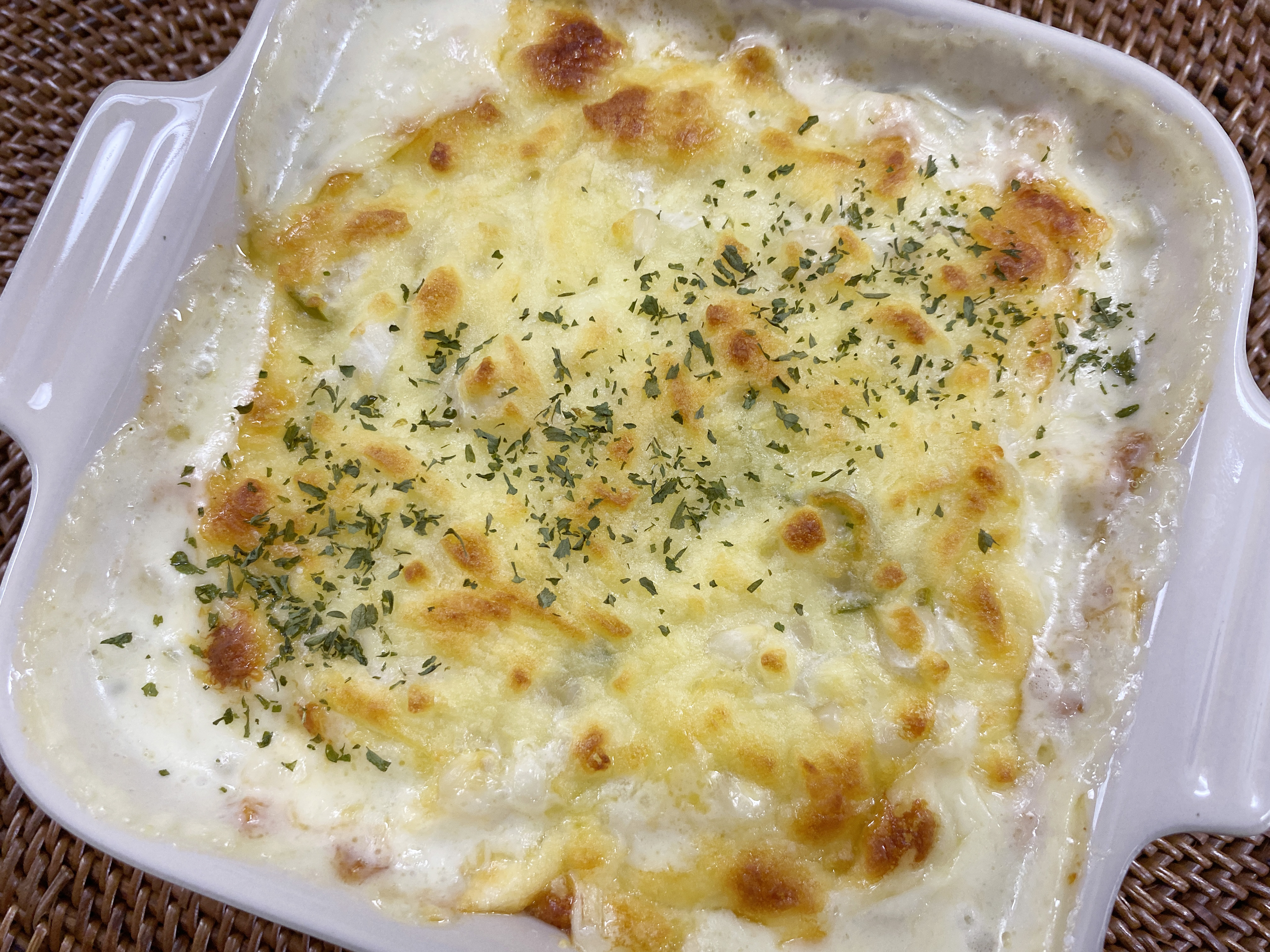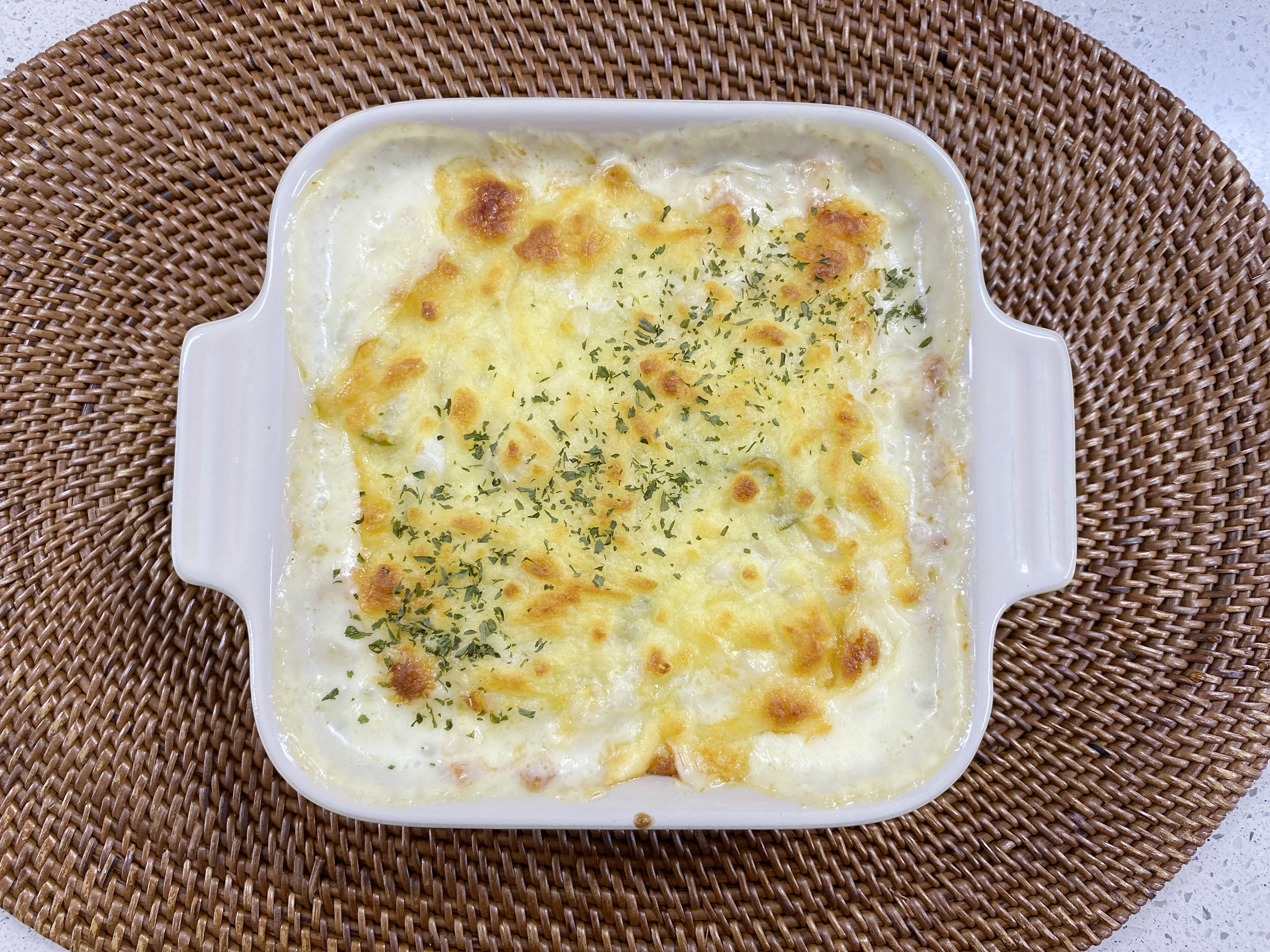 오븐 그릇에 얇게 잘 펴서 담고