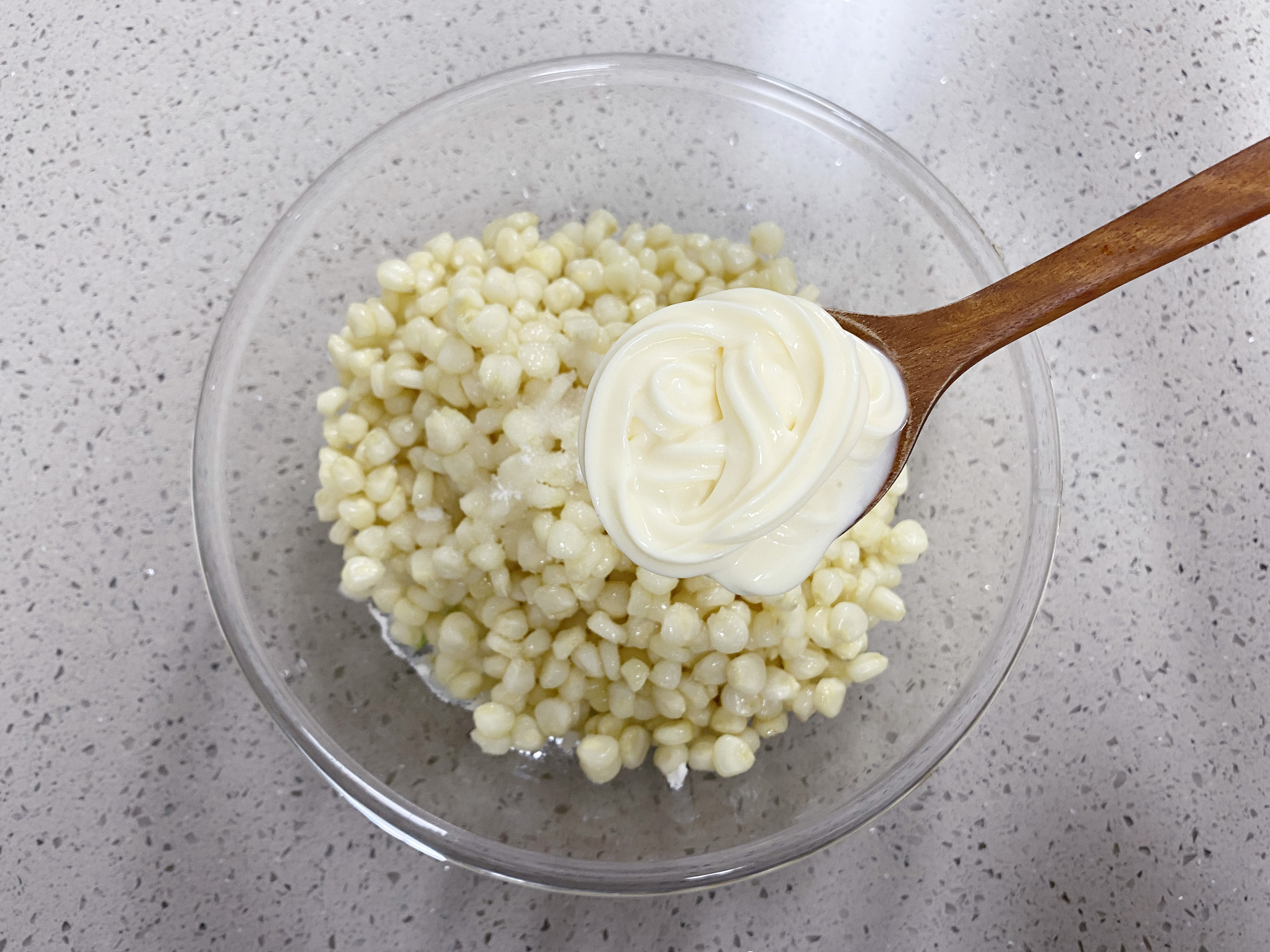 마요네즈 4숟갈을 넣고 잘 섞어 주세요