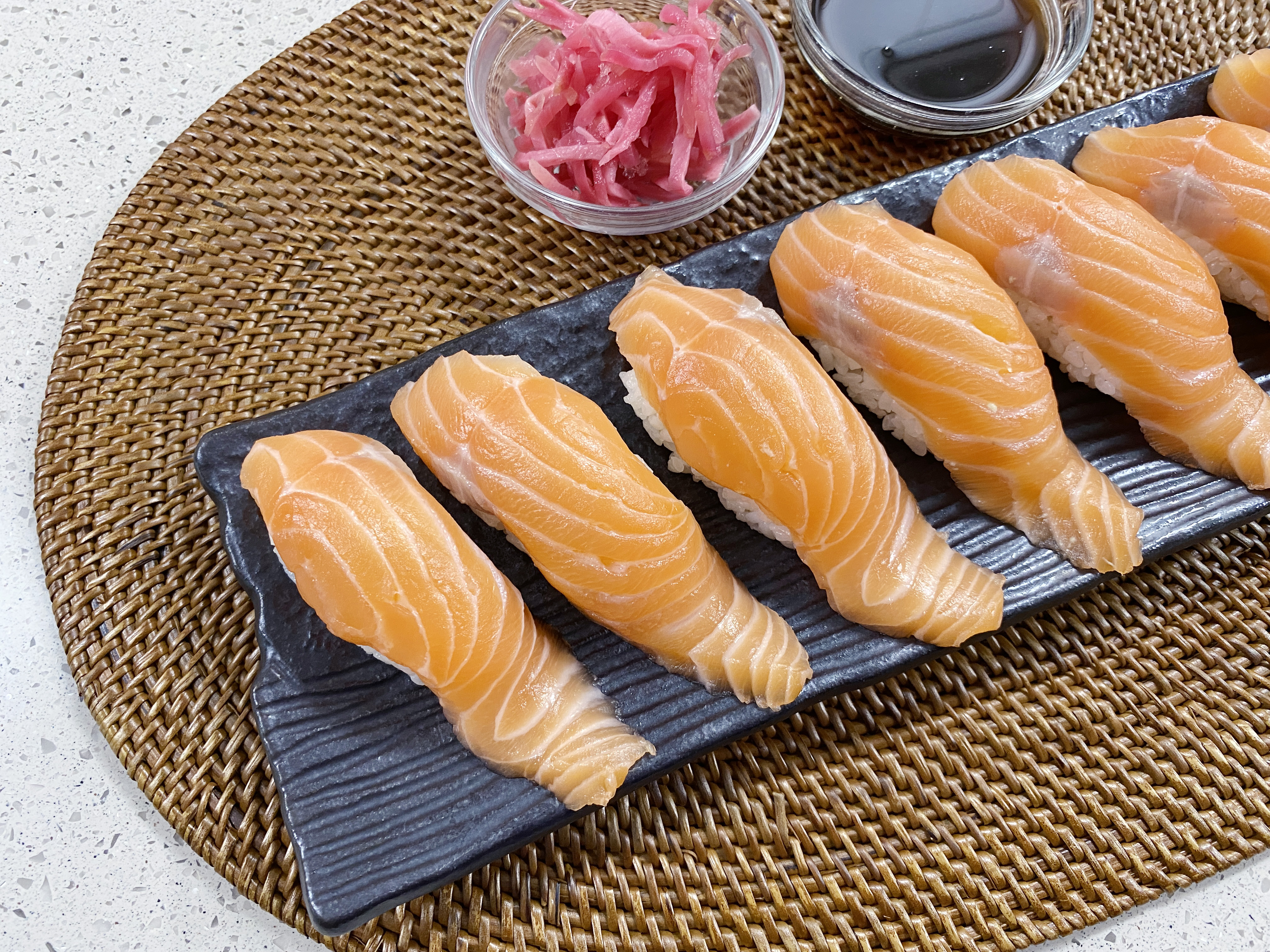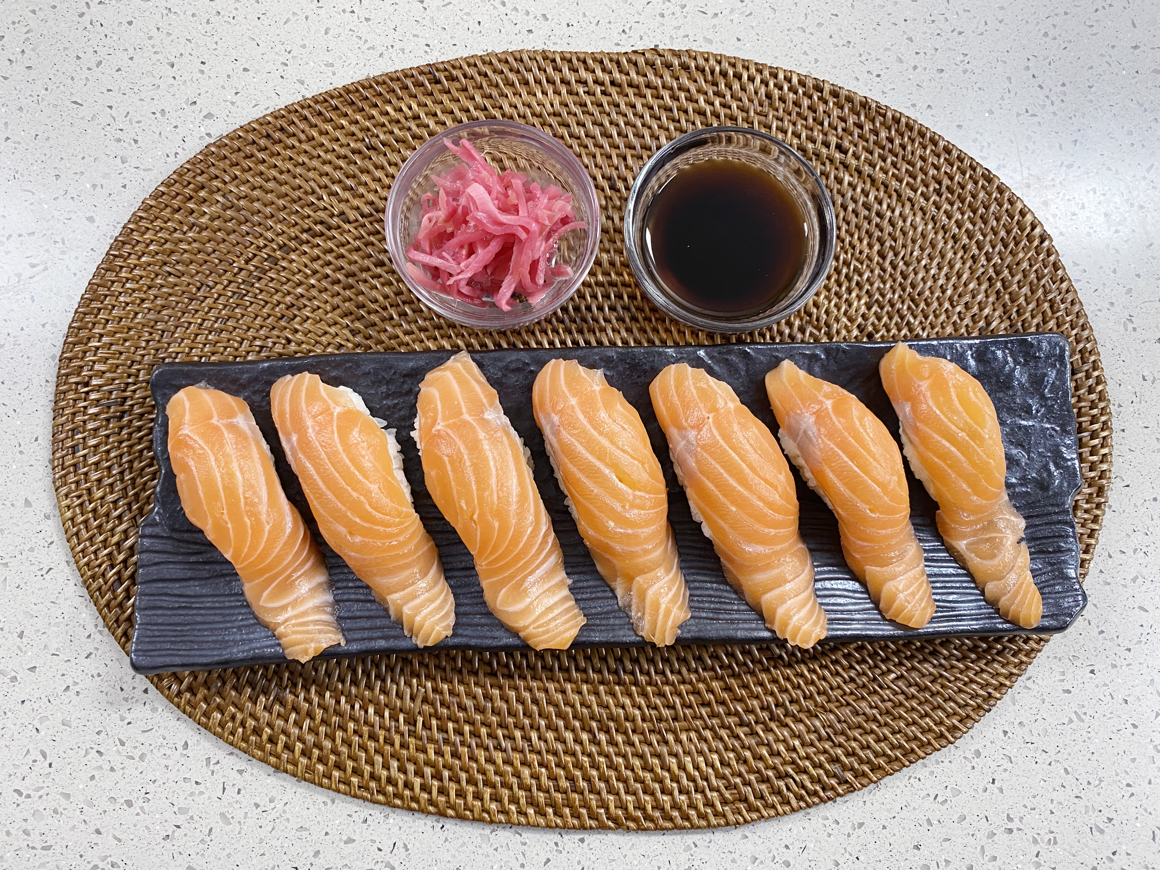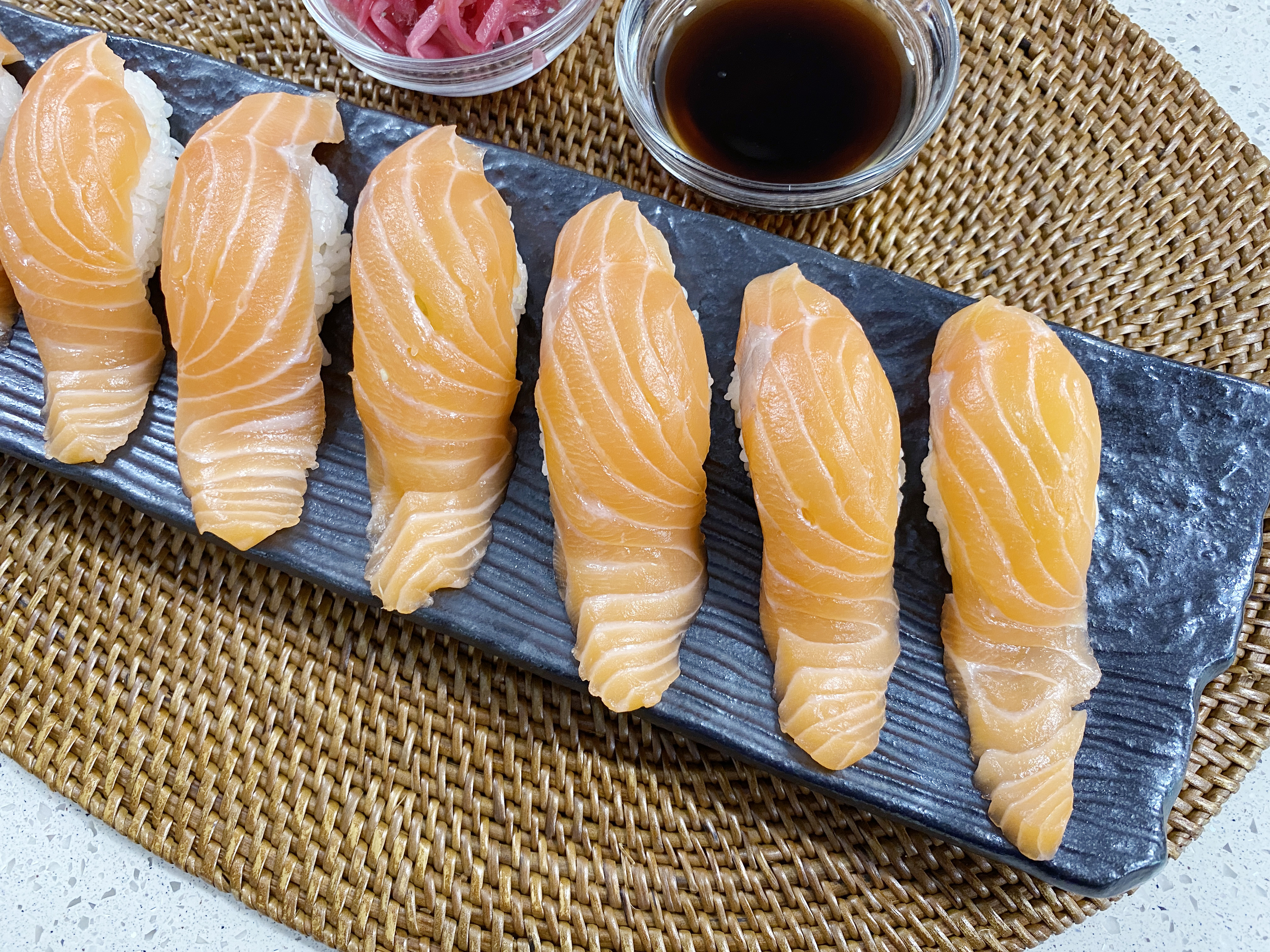 큼직한 연어초밥에 소스 콕 찍어서 먹으면