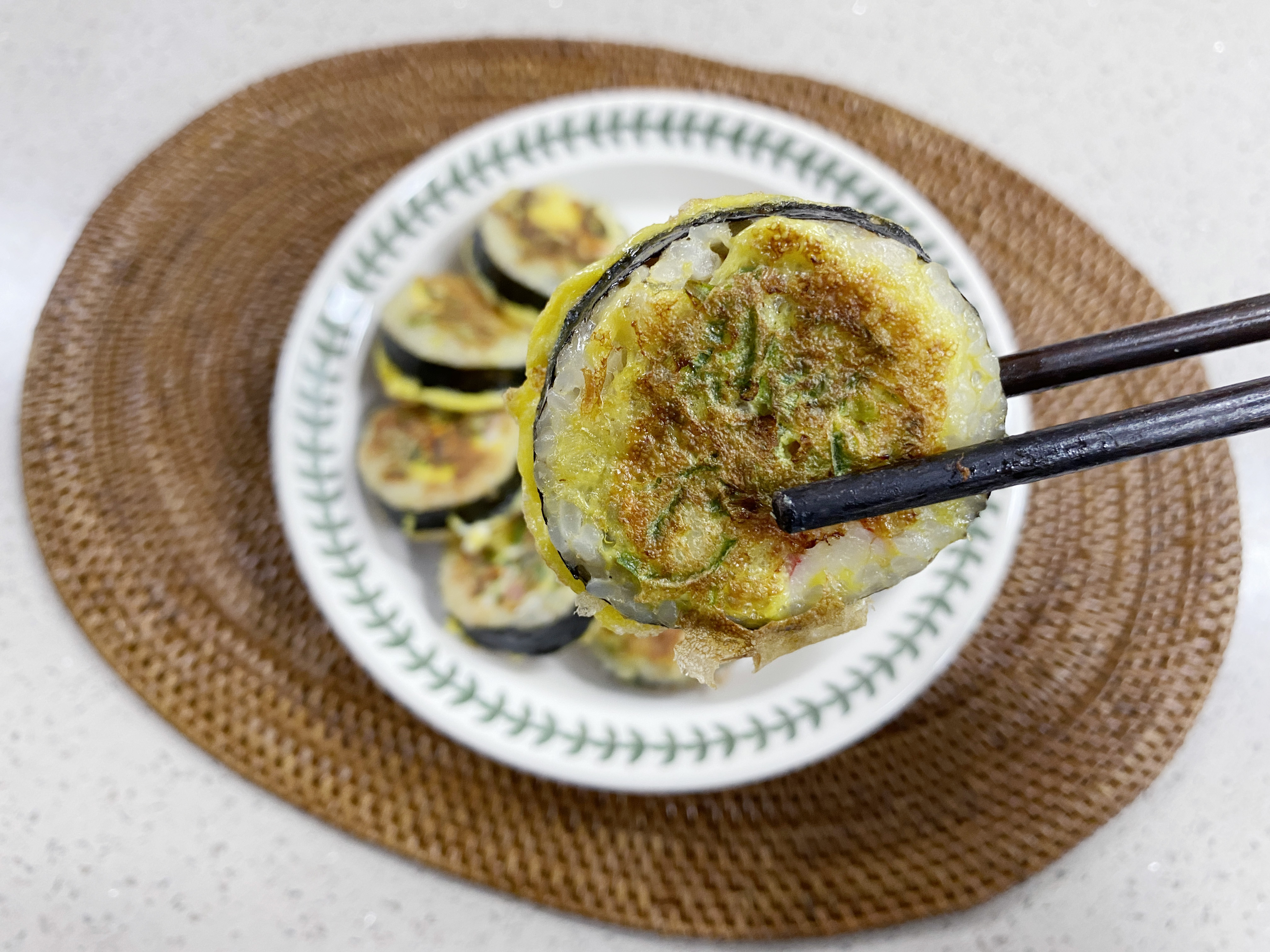 이제 김밥에 계란물을 잘 묻혀서