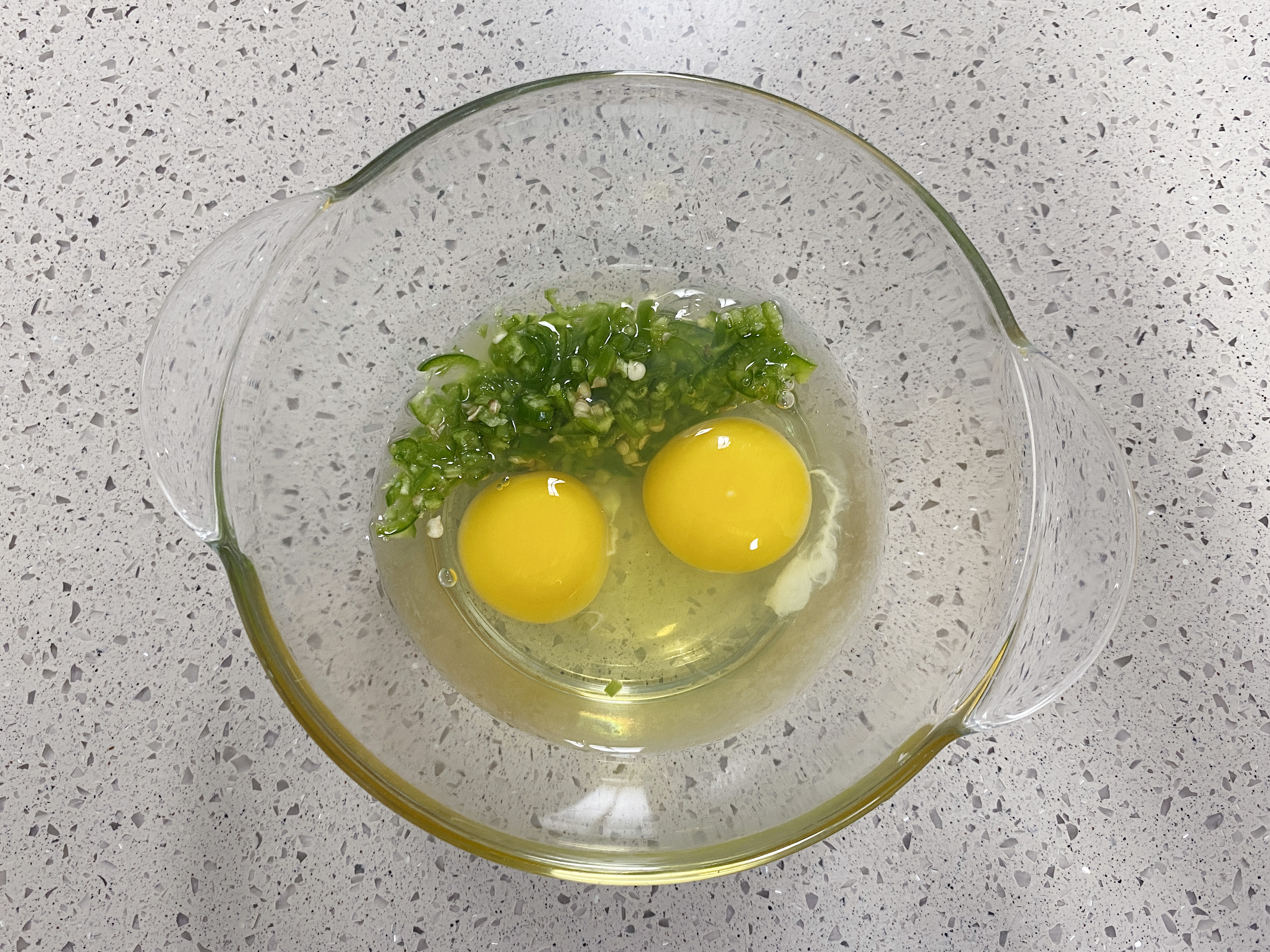 청양고추는 다져 넣고 계란 두 개,