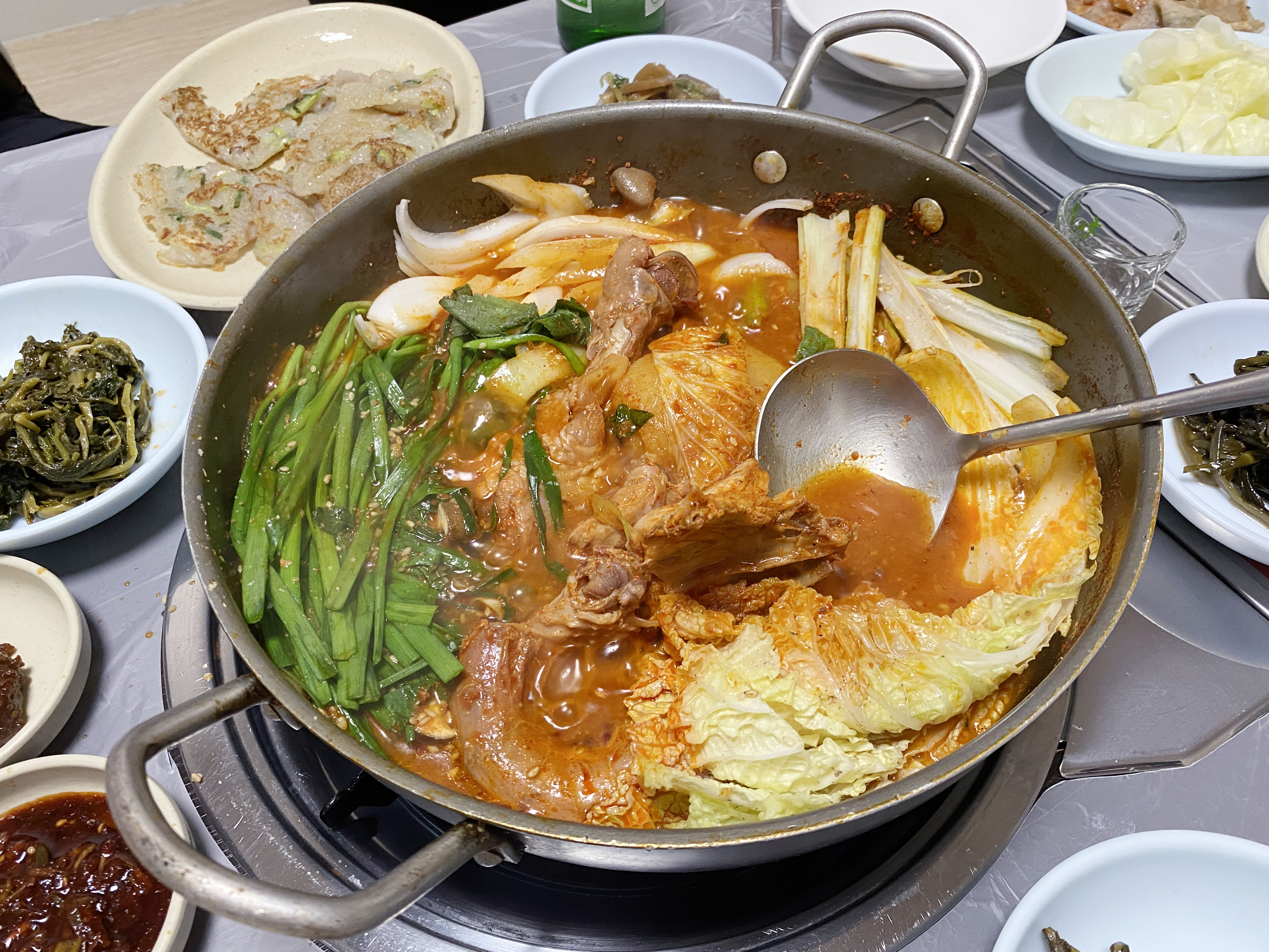닭볶음탕인데.. 버섯, 배추, 부추, 감자 등등