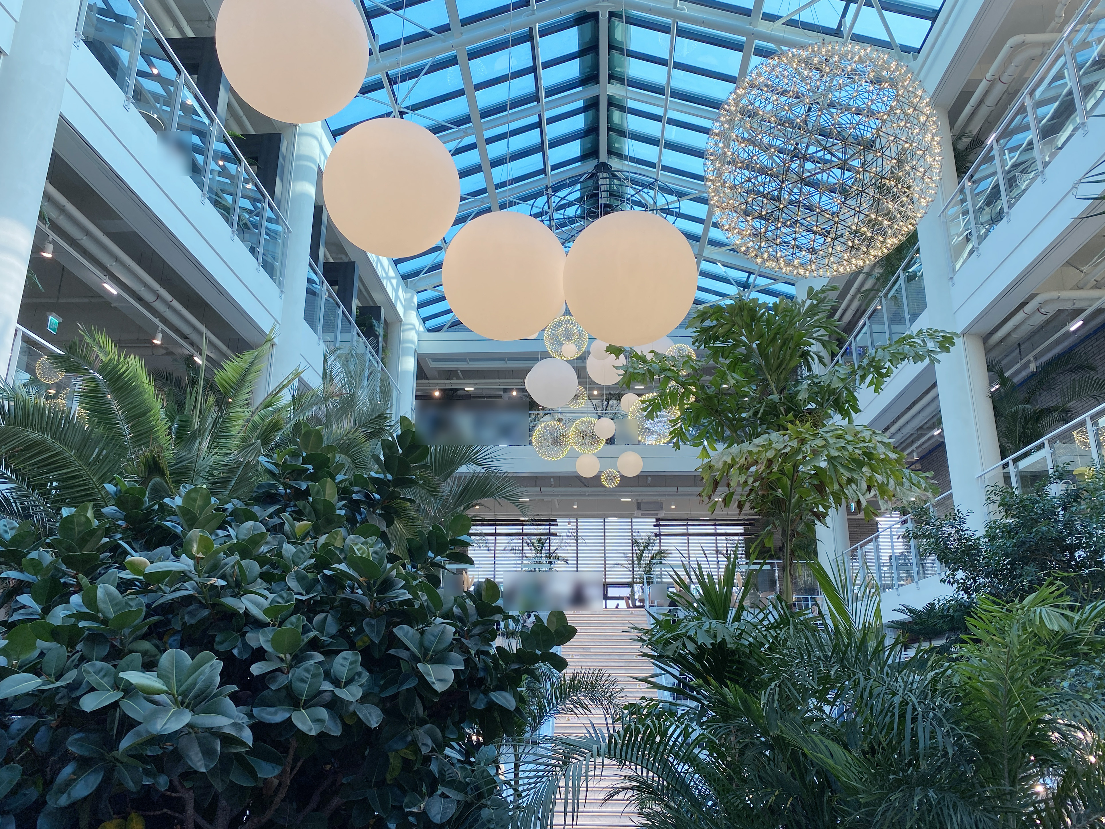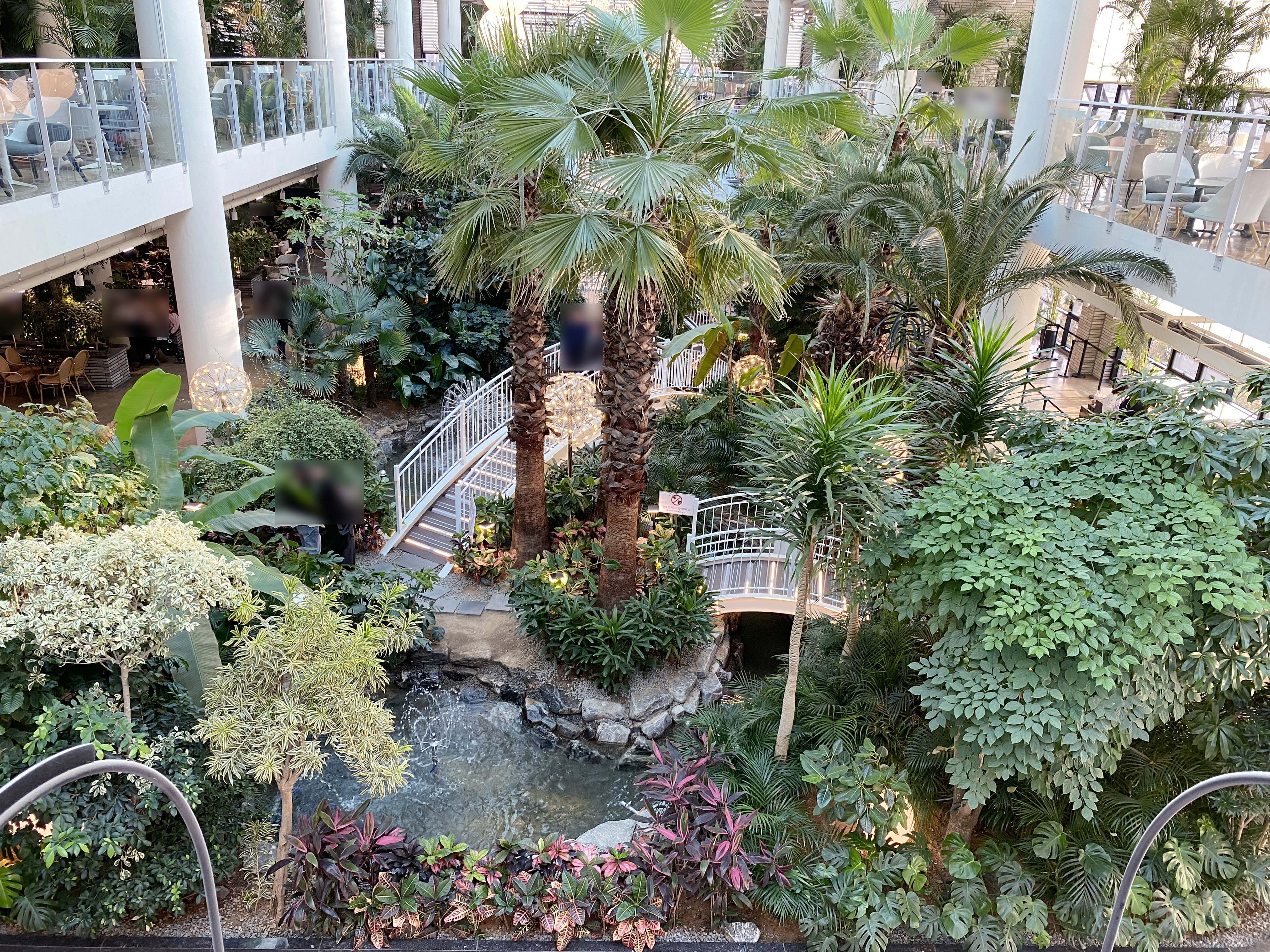 까페 중앙에 엄청난 규모의 정원이 있어요