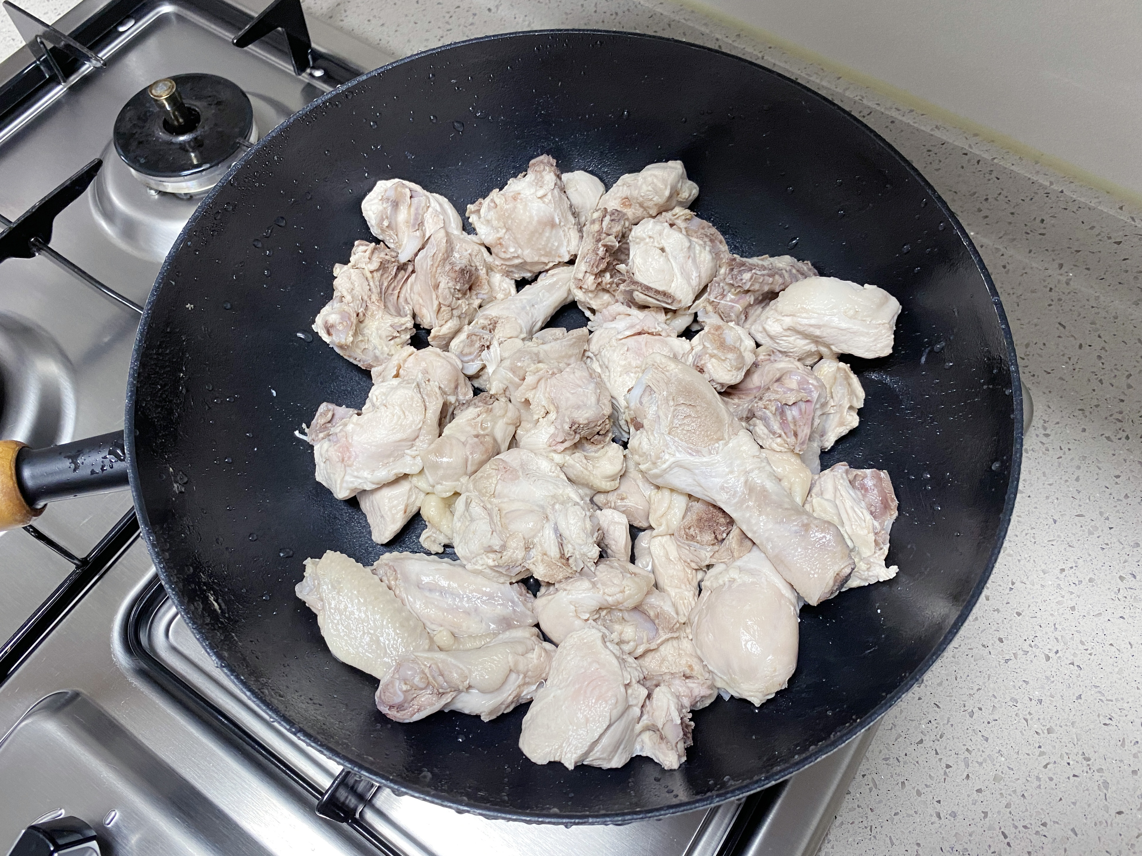 데친 닭과 양념, 물 500ml만 넣고