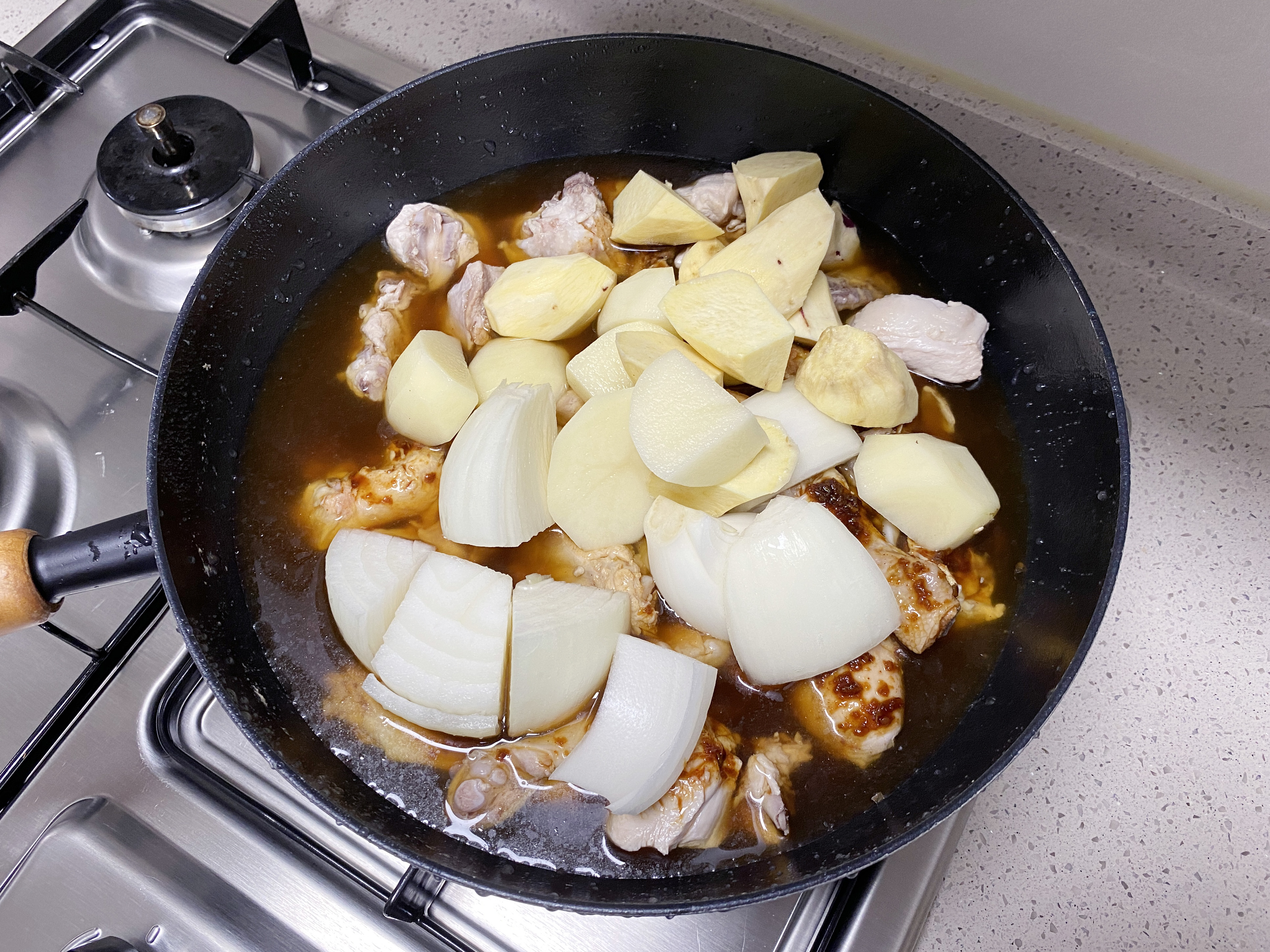 닭을 데치는 동안 감자와 고구마