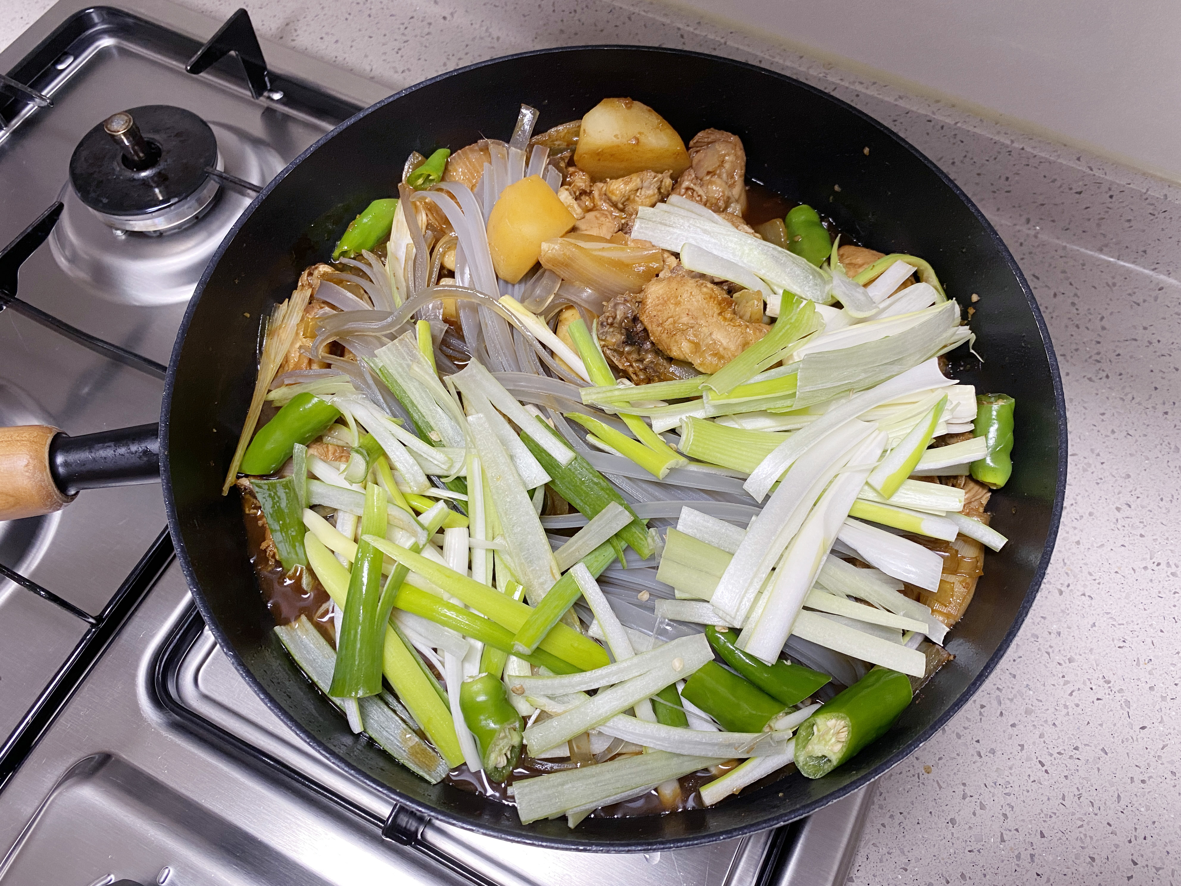 끓여지면, 불린 당면이랑 대파