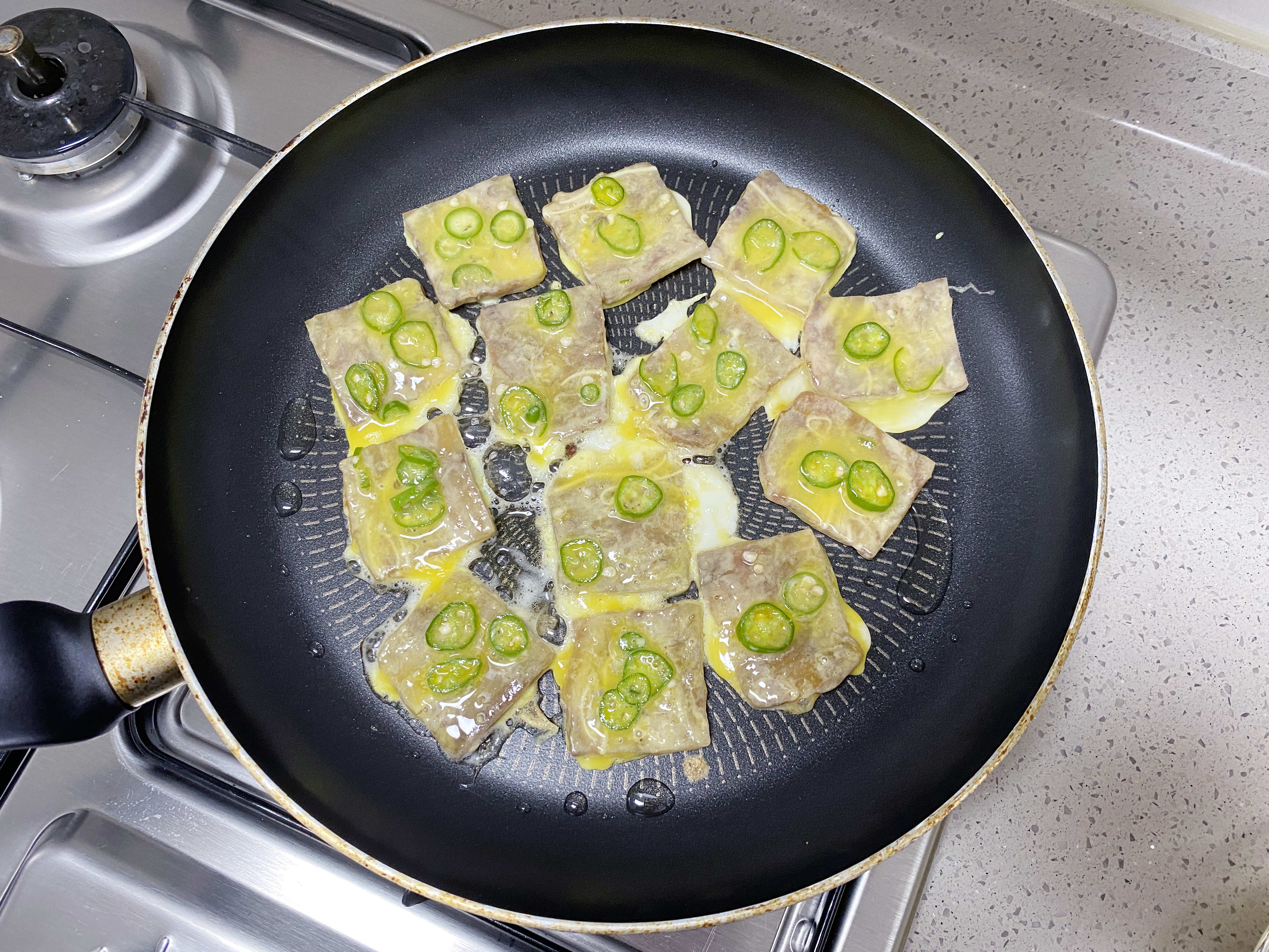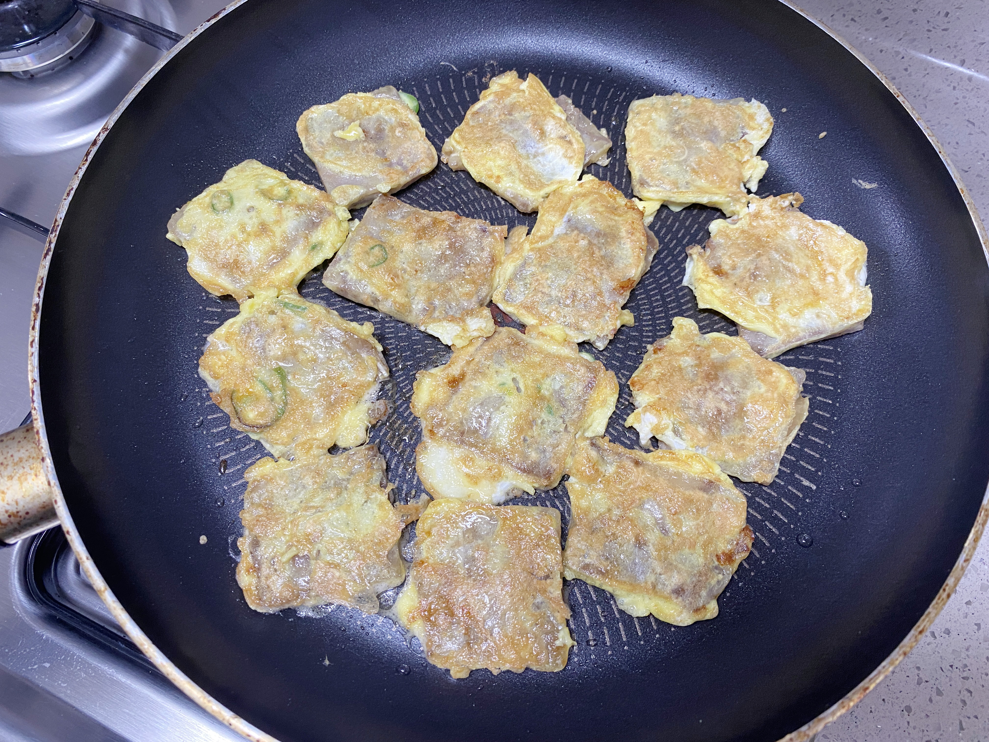 남은 편육을 고소하게 전으로 부쳐 볼게요