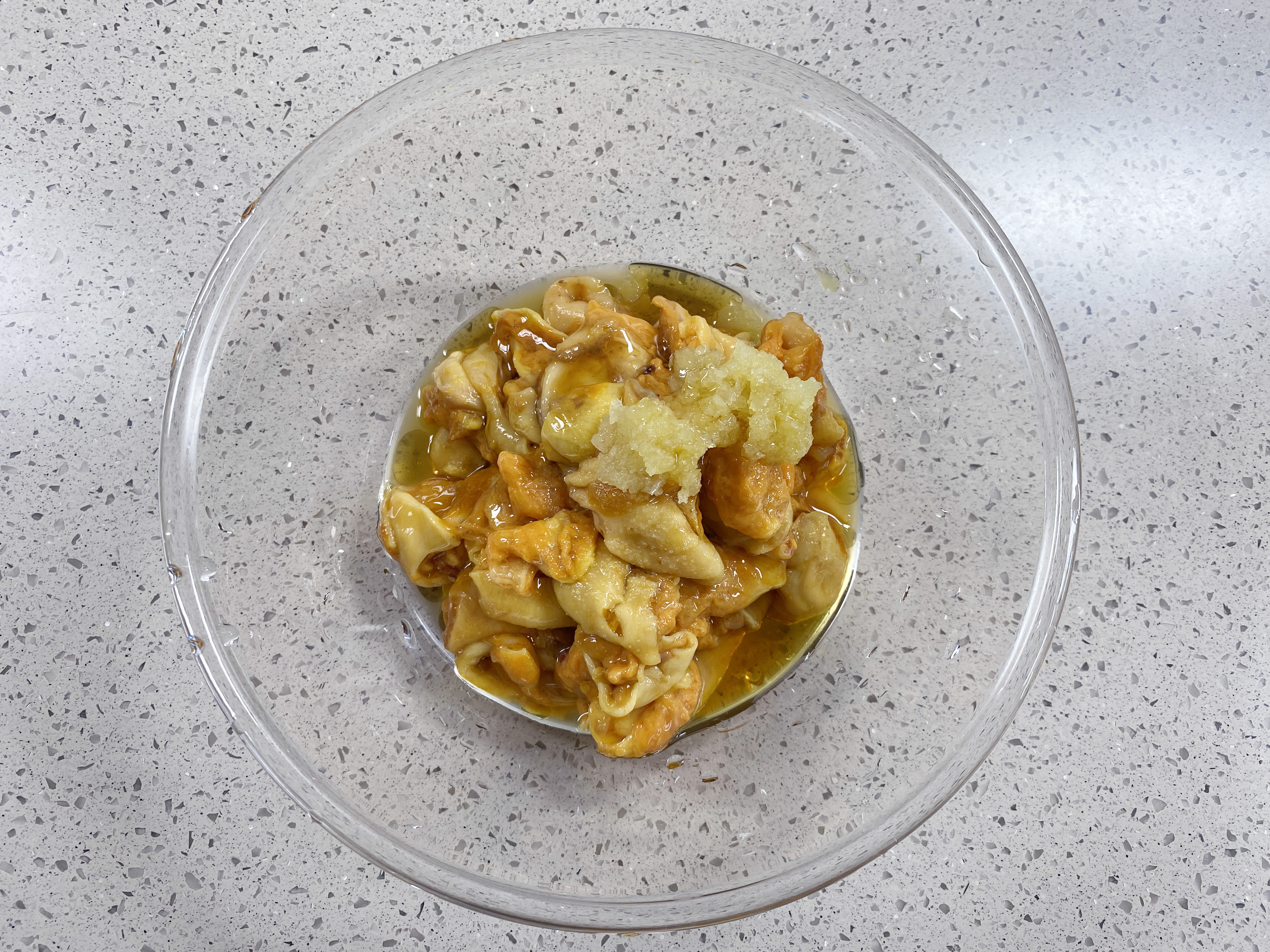 멍게에 맛소금 넣고, 다진 마늘 넣고