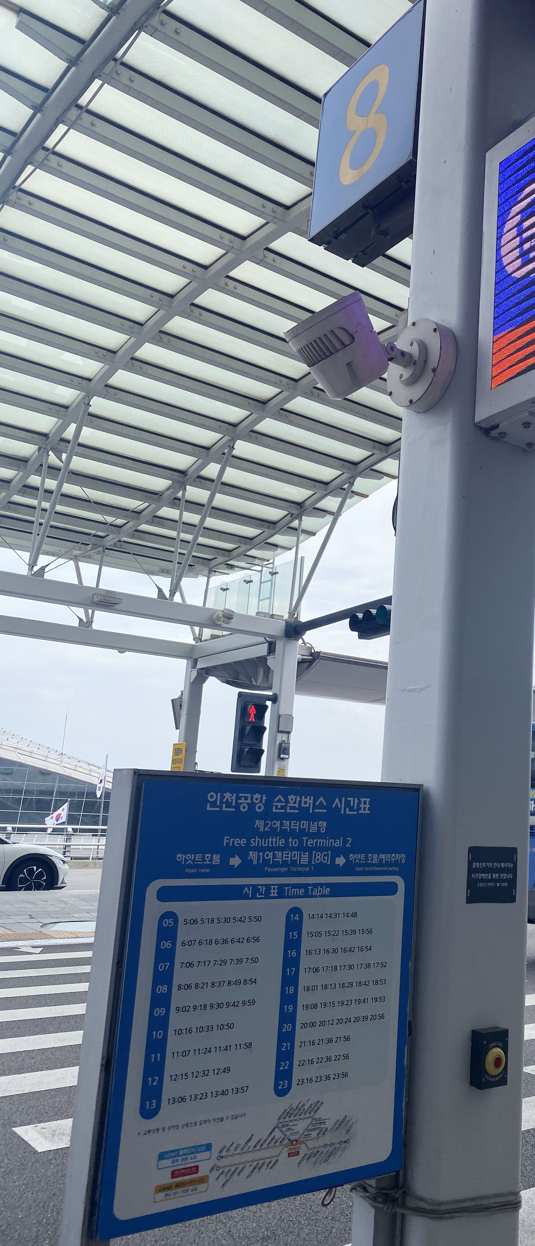 예약 주차장 건너편인, 하얏트 호텔 버스 정류장에서