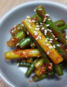 【깔끔한 오이지 무침】 다른 반찬이 필요 없는, 깔끔한 오이지무침을 만들어 볼게요~ 고춧가루가 들어가지 않아도~ 깔끔하니 맛나요~ ♡ 【재료】 오이지 ..... 5개 대파(흰 부분) ..... 1/3개 양념 매실액 ..... 3숟갈 들기름 ..... 2숟갈 간 마늘 ..... 1숟갈 통깨 ..... 팍팍 ※ 간은 기호에 맞게 가감해 주세요!! 냉동했던 거라,, 오이지에서 물이 많이 나오네요.. ㅎ ① 오이지는 얇게 송송~ 썰고, 대파는 흰 부분만 다져서 준비합니다. (영상 참조) ② 썰은 오이지는 10분간 담가 짠 기를 빼줍니다. ③ 두어 번 헹궈 물기를 꽈악~ 짠 다음,, ④ 대파, 매실액 3T, 들기름 2T, 간 마늘 1T, 통깨를 넣고 ⑤ 조물조물 무치면 완성!! 맛있게 무쳐졌죠~ ㅎ 눌은밥에,, ..